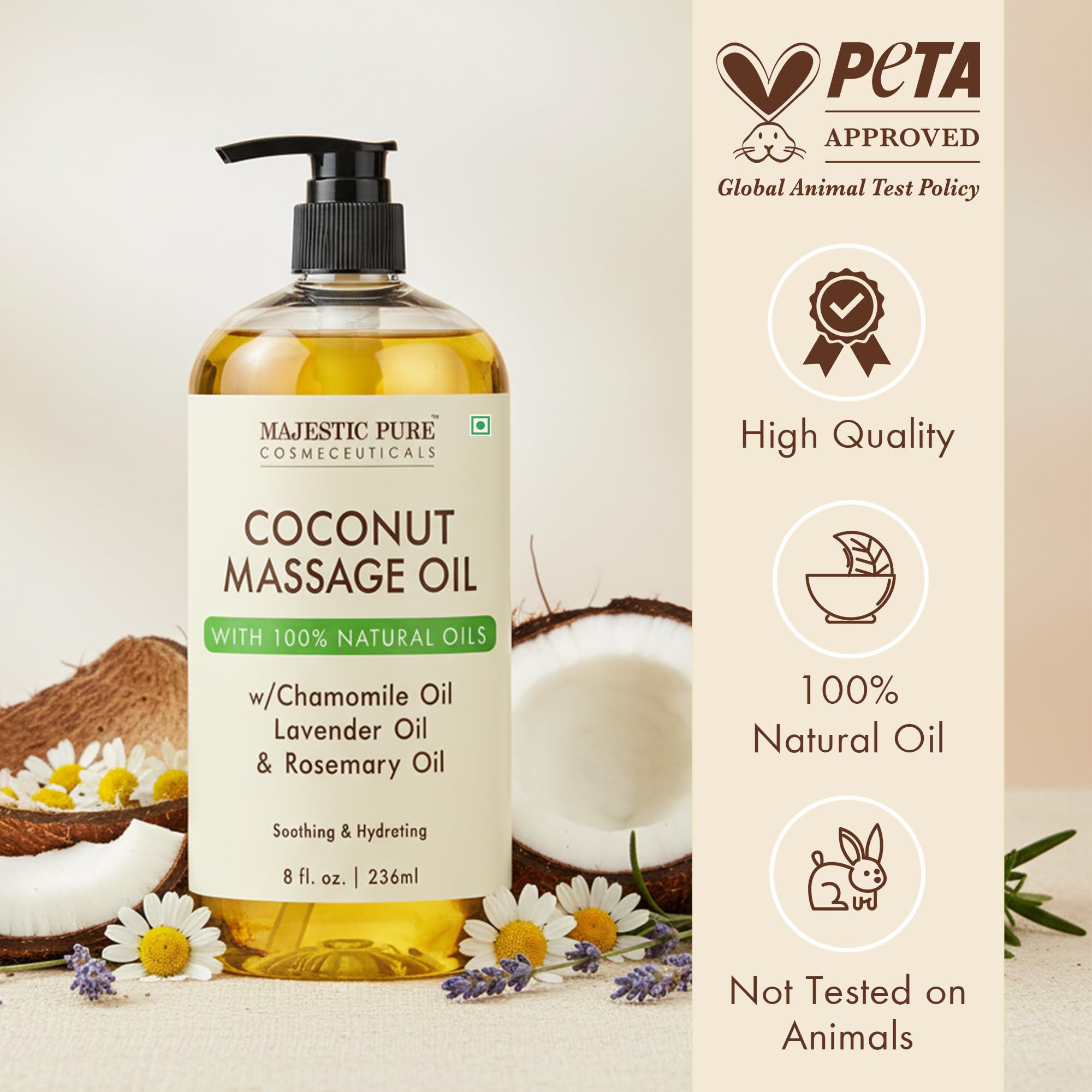 MAJESTIC PURE Coconut Massage Oil for Massage Therapy - Refreshing, and Relaxing - Natural Oils - for All Skin Types - Men and Women - 8 fl oz