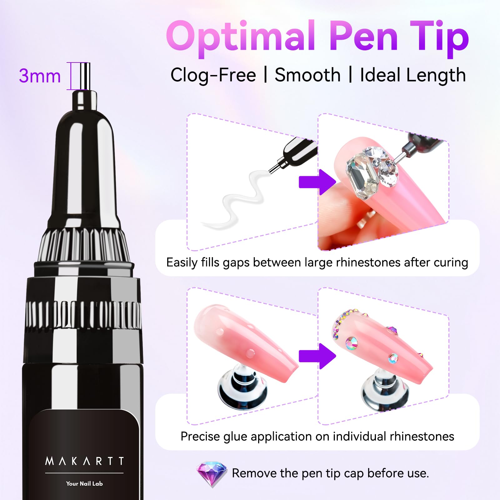 - Präziser Stiftkopf für punktuelles Auftragen – ideal für kleine Strasssteine und detaillierte Designs.