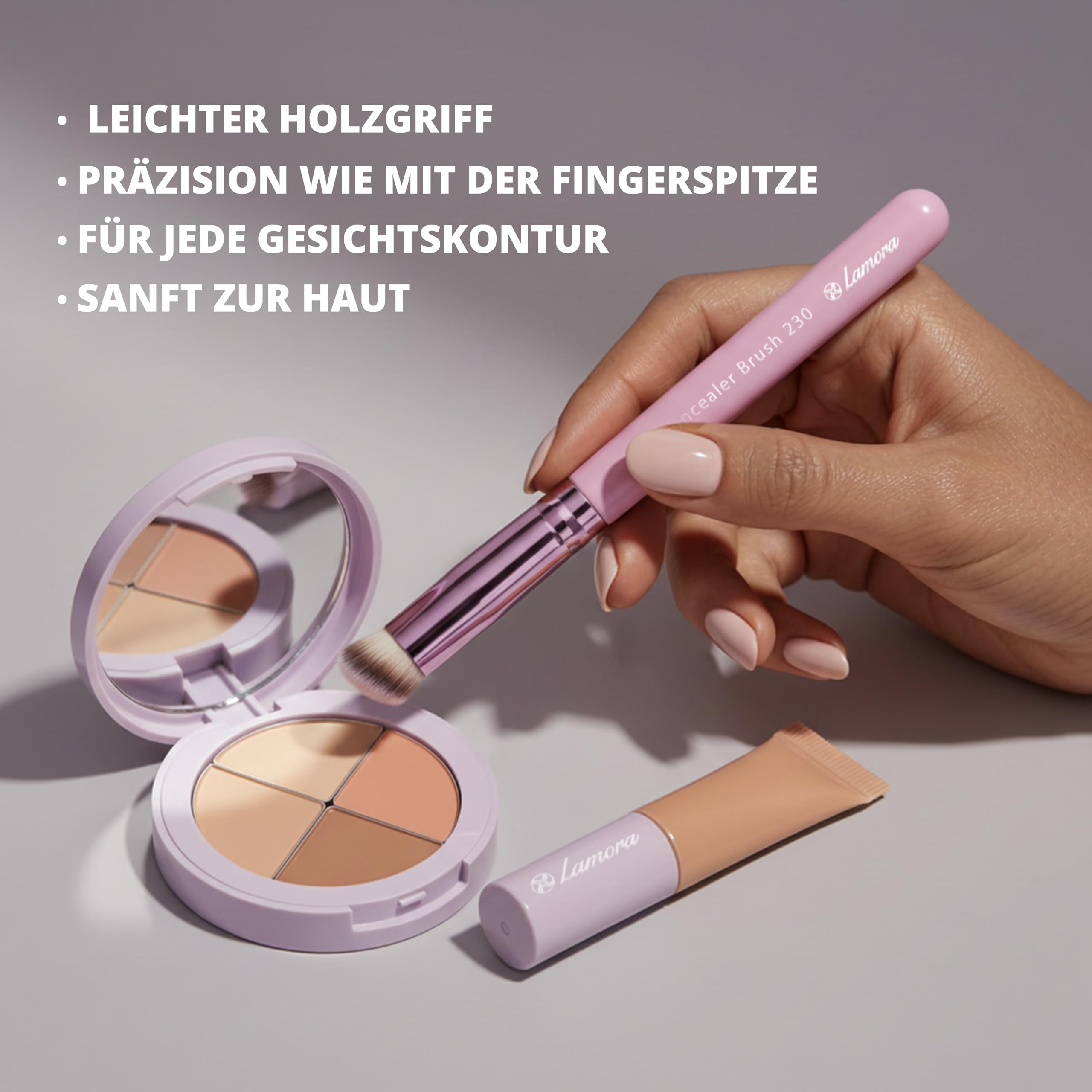 Der Lamora Concealer Pinsel eignet sich hervorragend fuer fluessige und cremige Concealer, Corrector, Highlighter sowie feine Konturprodukte. Auch fuer praezise Arbeiten rund um Lippen- und Augenpartie ist er optimal geeignet.