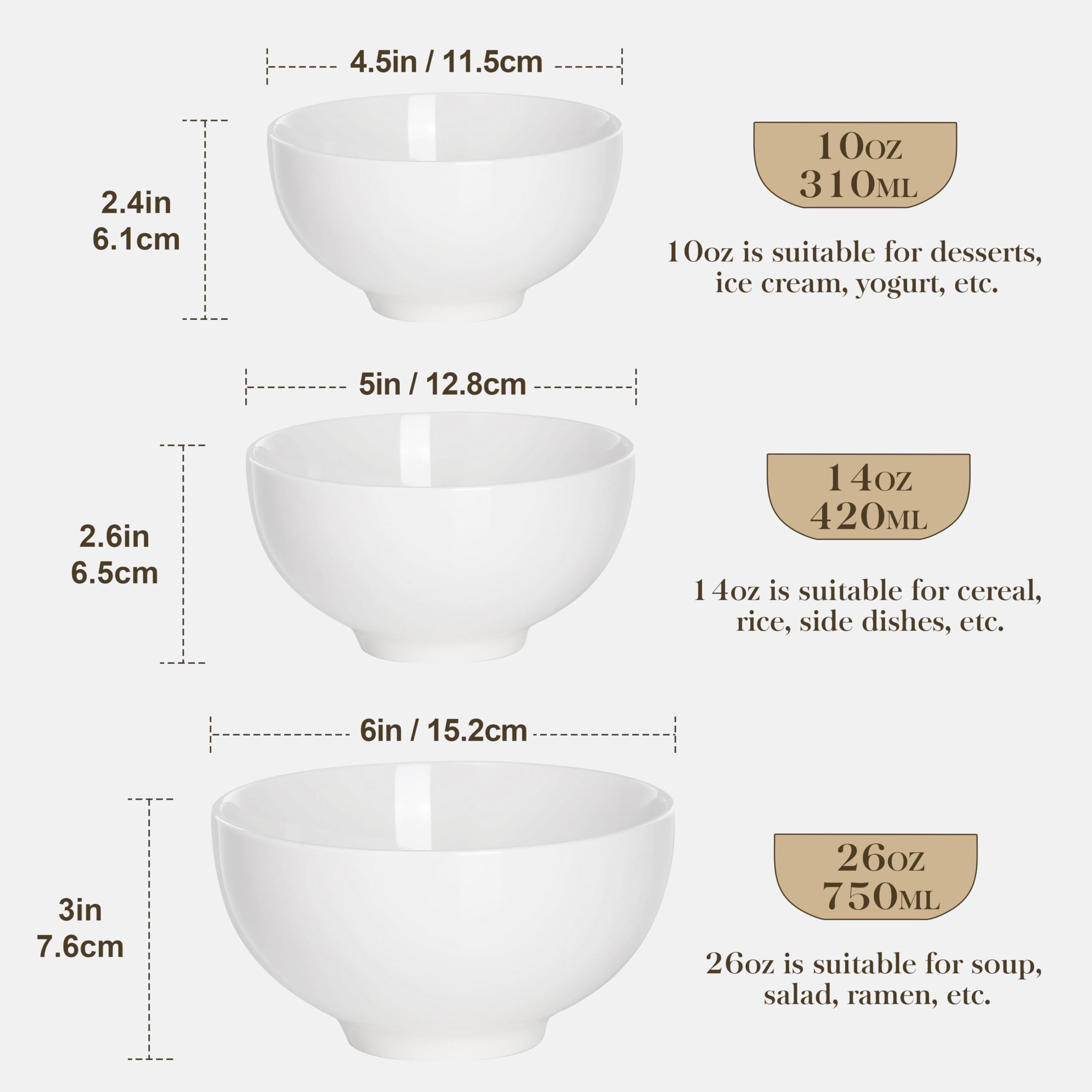 MALACASA, Serie Regular, 4-teilig Porzellan Cremeweiss Müslischalen Set, 750ml Suppenschüssel Reisschale Bowl Schüssel, Snackschale Dessertschale für Salat, Suppen, Ramen, Obst usw. 15,2x15,2x7,6cm