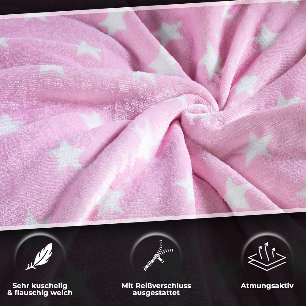 MALIKA Warme Winter Plüsch Sterne Wende-Bettwäsche Nicky-Teddy 'Cashmere Touch' Coral Fleece viele Farben & Grössen, Farbe:Rosa, Grösse:155 x 220 cm