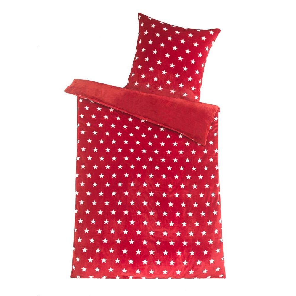 MALIKA Warme Winter Plüsch Sterne Wende-Bettwäsche Nicky-Teddy 'Cashmere Touch' Coral Fleece viele Farben & Grössen, Farbe:Weinrot, Grösse:155 x 220 cm