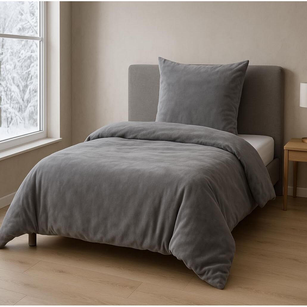 MALIKA Winter Plüsch Bettwäsche Nicky-Teddy Cashmere Coral Fleece 135x200 155x220 200, Grösse:135 x 200 cm, Designe:GRAU