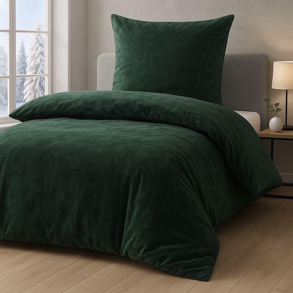 MALIKA Winter Plüsch Bettwäsche Nicky-Teddy Cashmere Coral Fleece 135x200 155x220 200, Grösse:135 x 200 cm, Designe:DUNKELGRÜN