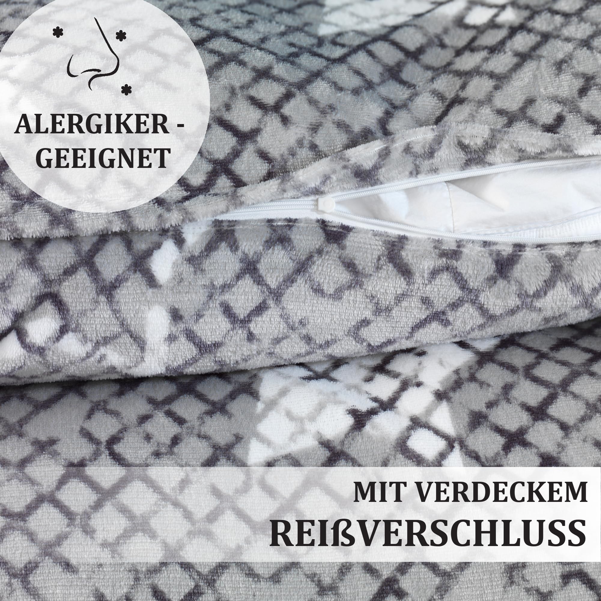 MALIKA Winter Plüsch Bettwäsche Nicky-Teddy Cashmere Coral Fleece 135x200 155x220 200x200 Kissenbezug 80x80 Verschiedene Muster, Grösse:135 x 200 cm, Design - Motiv:Star Silber