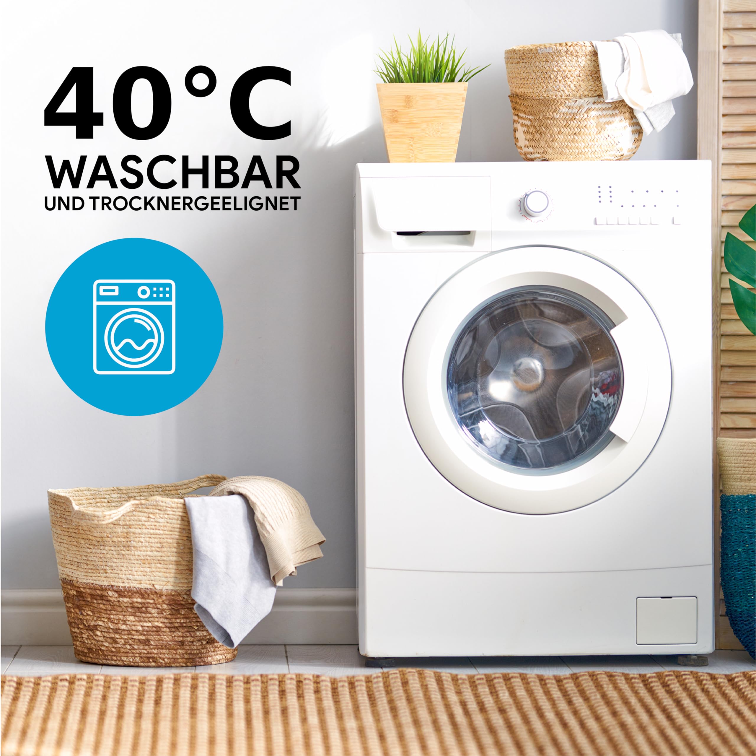 Waschbar bei 60°Trocknergeeignet bei niedrigster Temperatur