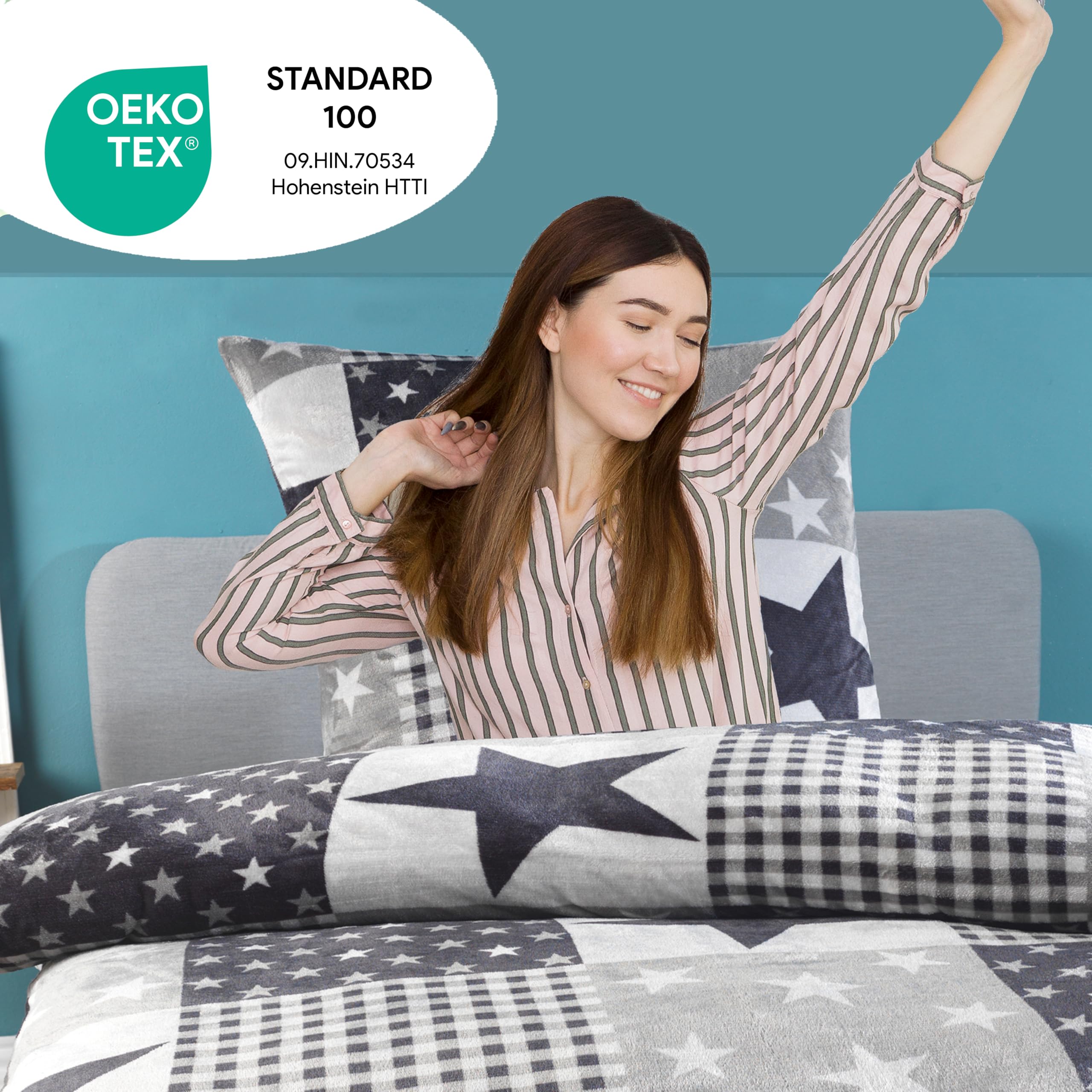 bügelfreihautfreundlich & pflegeleichtfeuchtigkeitsregulierendatmungsaktiv100% Polyester Cashmere TouchGeeignet für Allergikermit Reissverschlussabsolut flauschig, weich und warm, Wärmer z.B. als vergleichbare BIBER Bettwäsche
