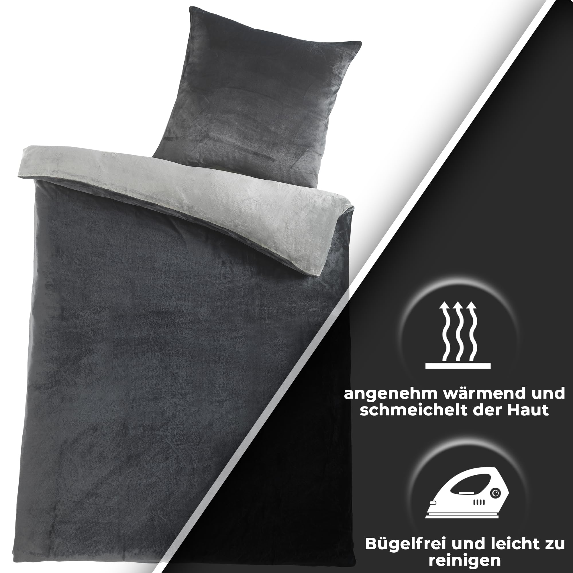 MALIKA Winter Plüsch Wendebettwäsche Nicky-Teddy 'Cashmere Touch' 135-155 - 200x200 Coral Fleece, Farbe:Silber-ANTHRAZIT, Grösse:135 x 200 cm