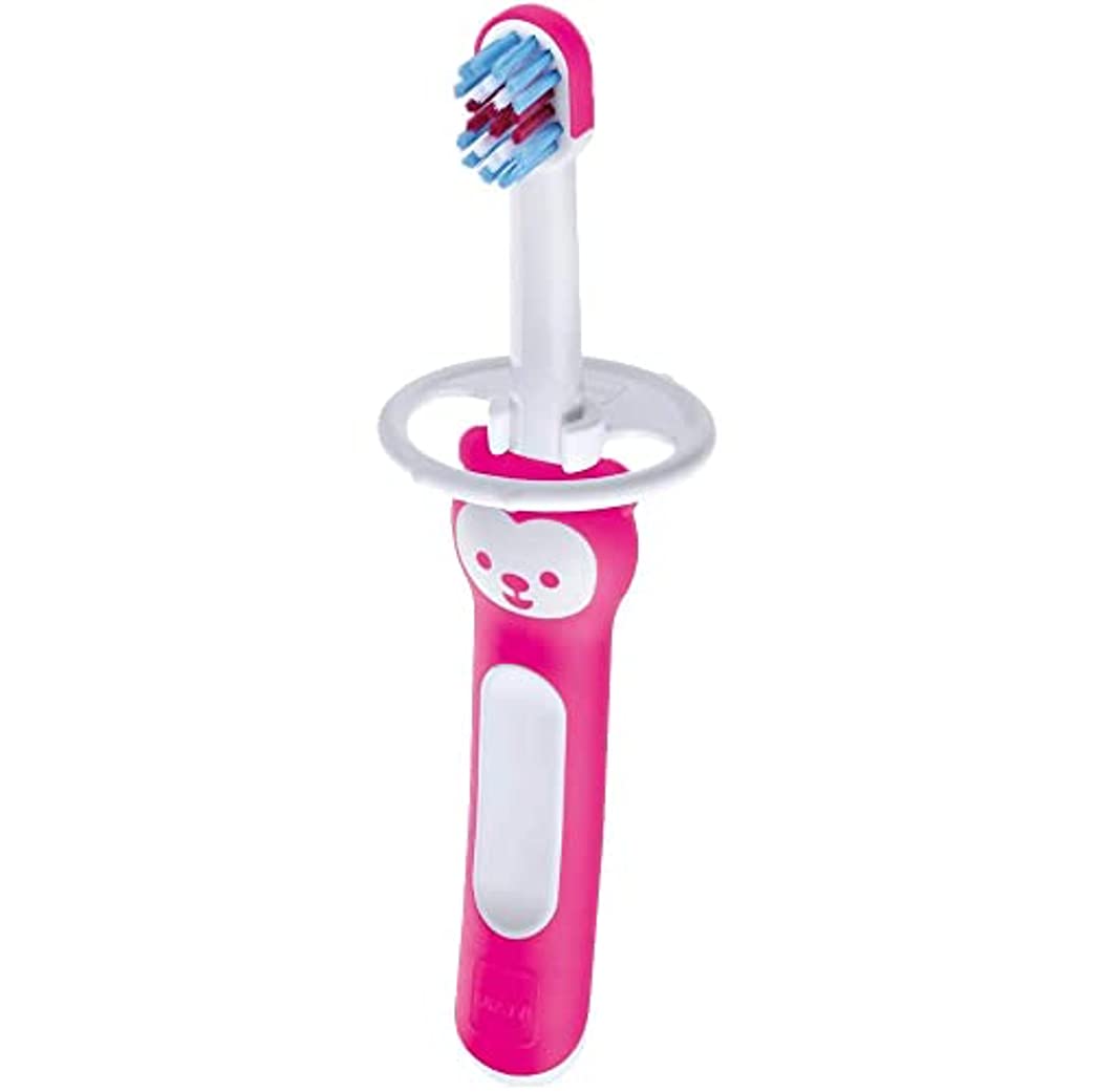 • PRODUKTDETAILS - MAM Babybürste 2er Pack, Baby Zahnbürste, ideal zum Unterrichten der Zahnhygiene für Säuglinge, Zahnbürste für Babys, Mädchen oder Jungen, Rosa, Artikelnummer: OC0303G