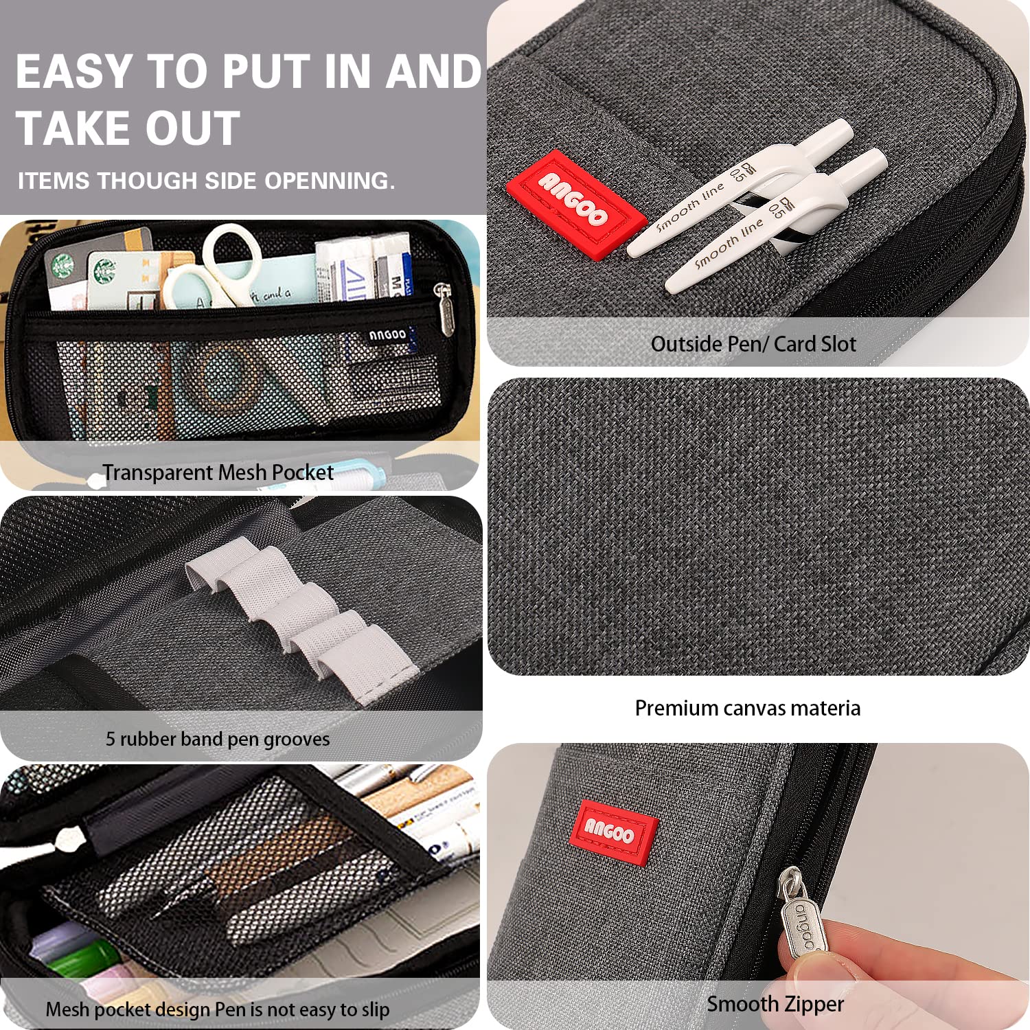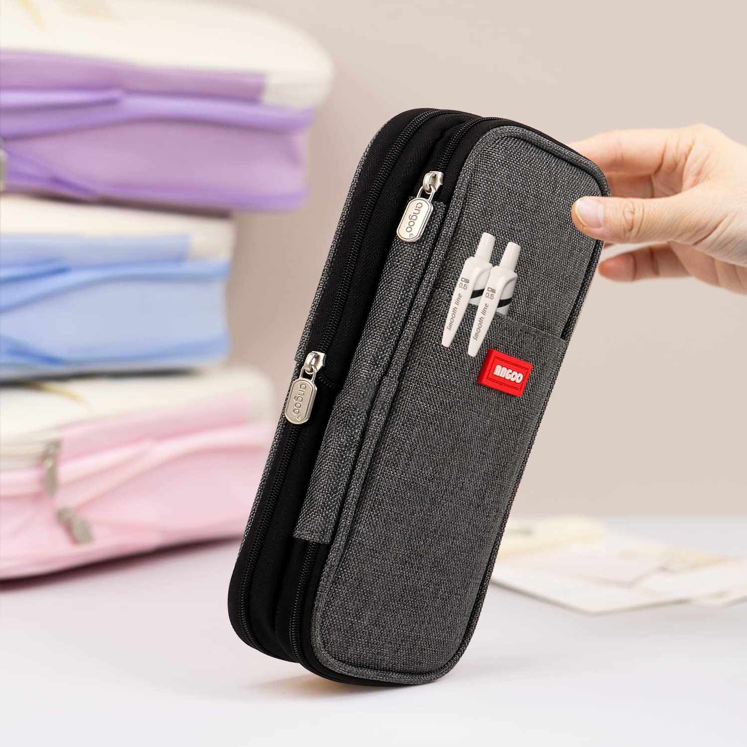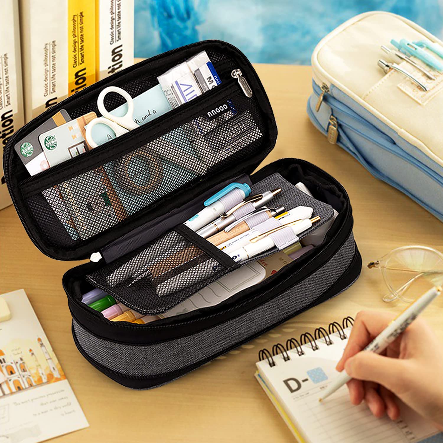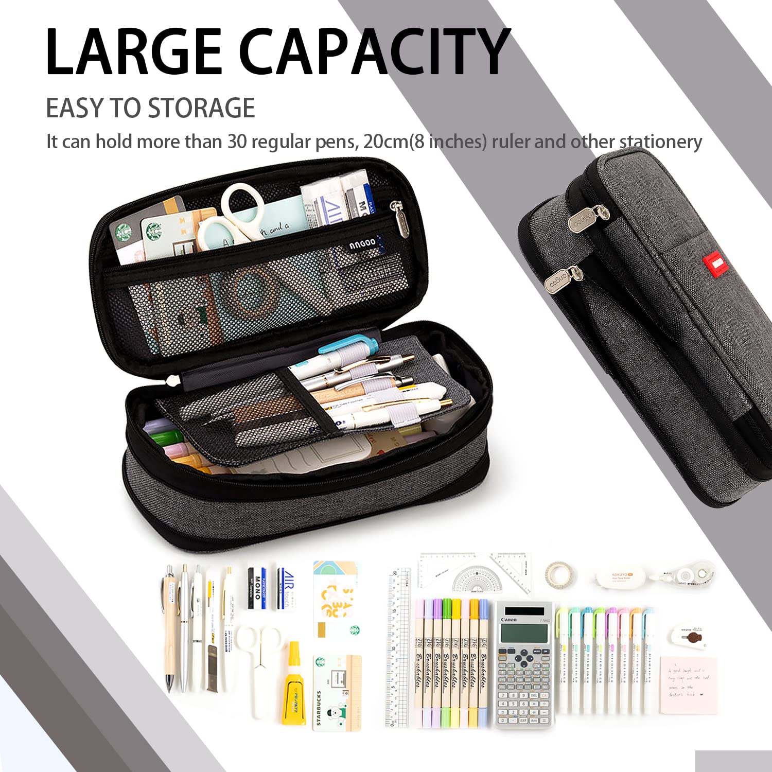 MAMUNU Mäppchen Mädchen Teenager, Federmäppchen Gross Kapazität, Schlamppermäppchen, Federtasche Mädchen, Pencil Case Aesthetic, Mäppchen Reissverschluss für Schule & Büro (Dunkelgrau)
