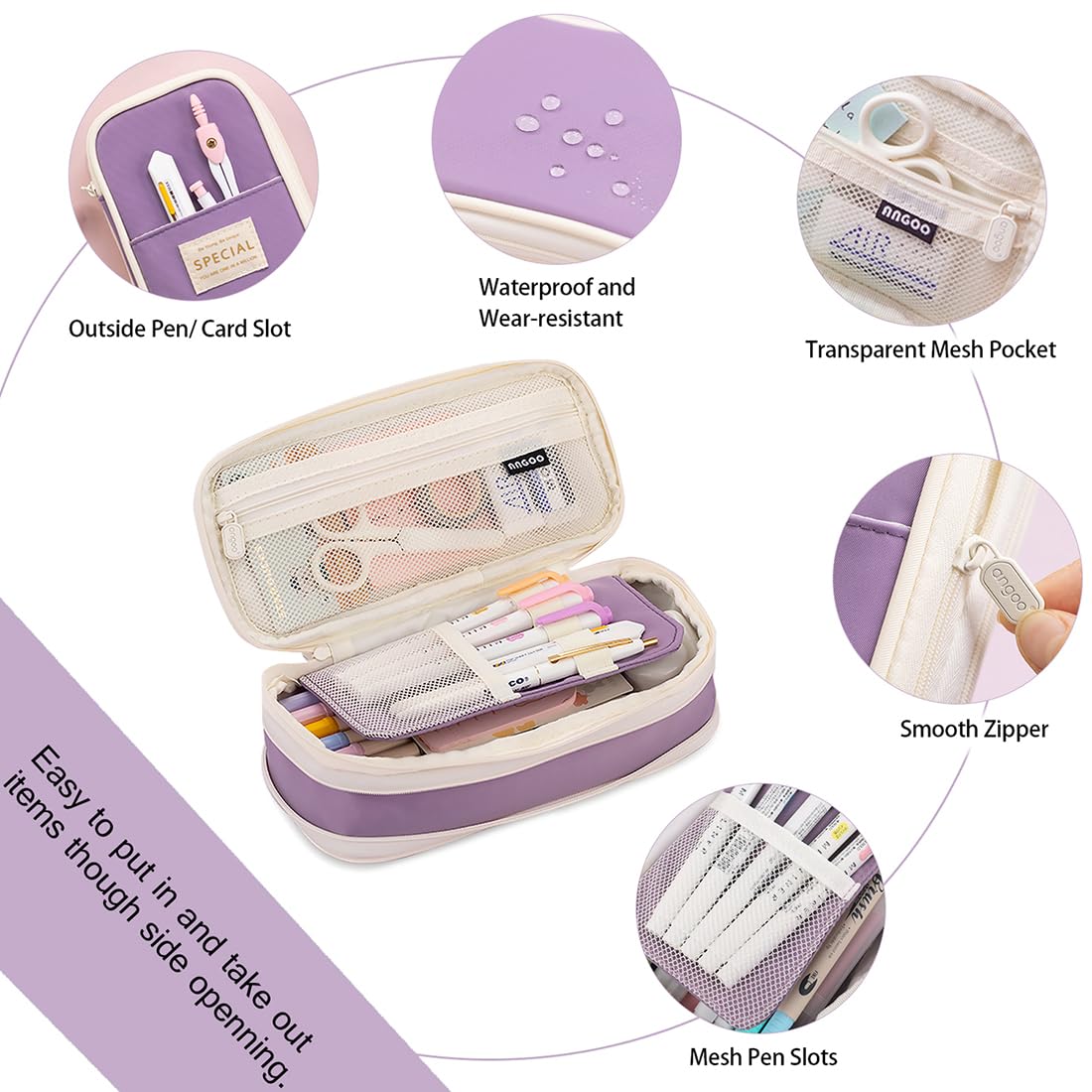 MAMUNU Mäppchen Mädchen Teenager, Federmäppchen Gross Kapazität, Schlamppermäppchen, Federtasche Mädchen, Pencil Case Aesthetic, Mäppchen Reissverschluss für Schule & Büro, Lila