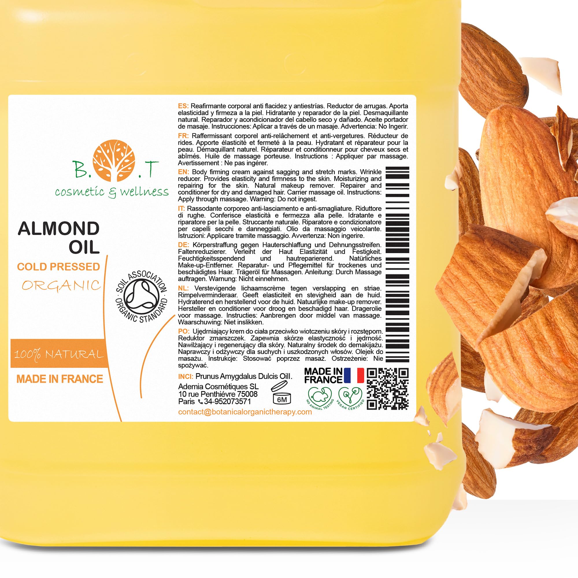 Mandelöl BIO Reines, Kaltgepresst, Natürlich. Kosmetik Massageöl, Haar- und Bartöl, Körperöl, Anti-Falten-Gesichtsöl, Schwangerschaftsstreifen, Nägel, Mandelöl Baby, Scalp Oil - 500 ml