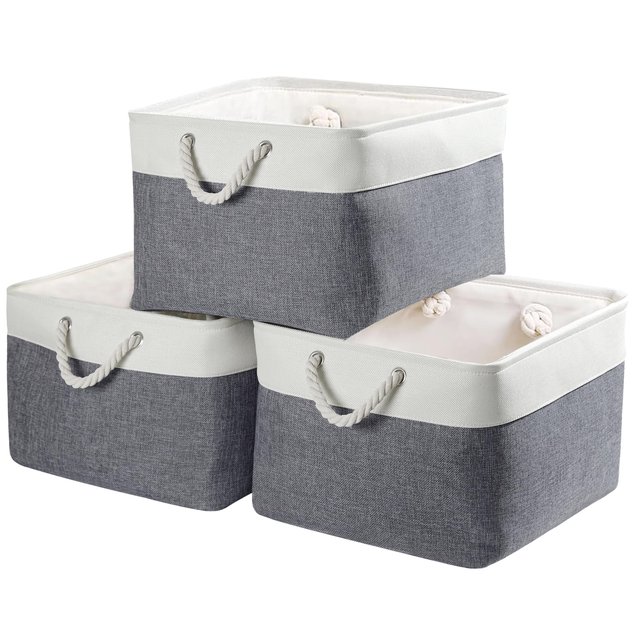 Mangata 3 Stück aufbewahrungskorb Stoff, aufbewahrungsbox gross Schrank, Korb aufbewahrung Stoff mit Seil für Spielzeug, kleiderschrank, Regale, Kleidung (kaltes graues Weiss, XL)