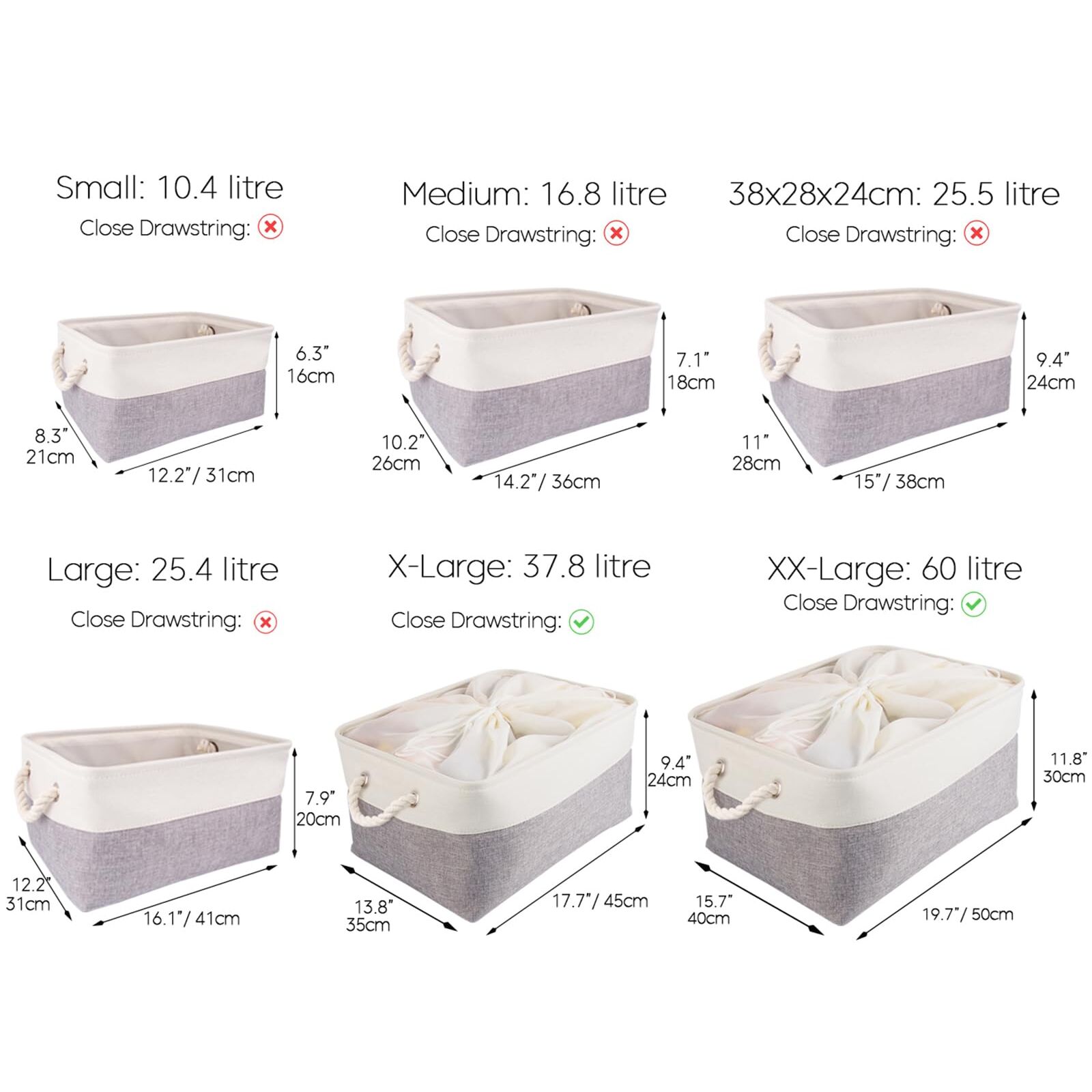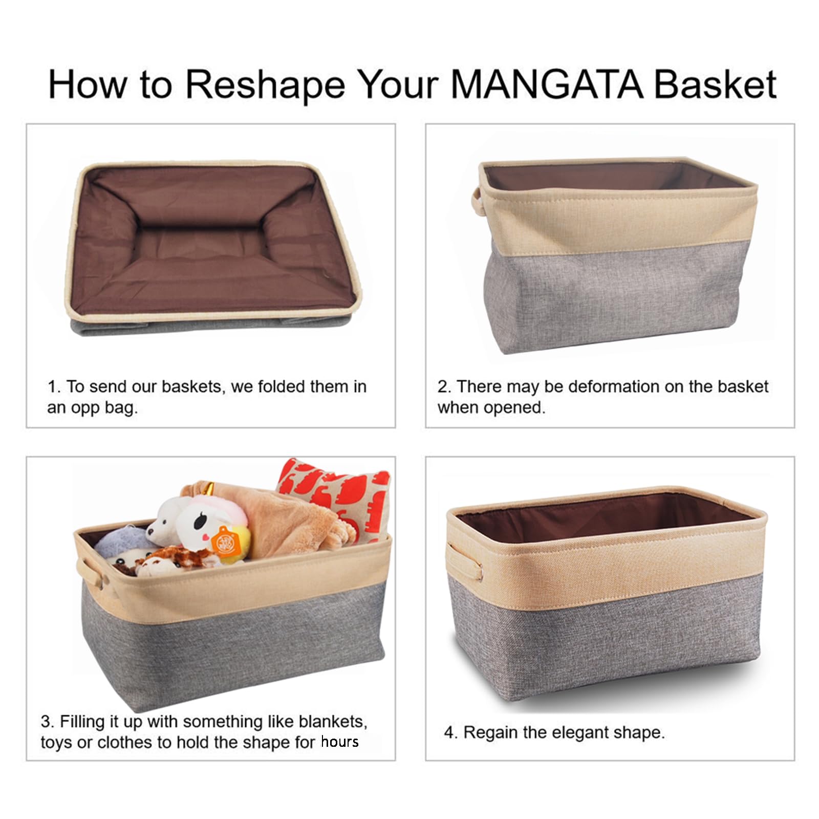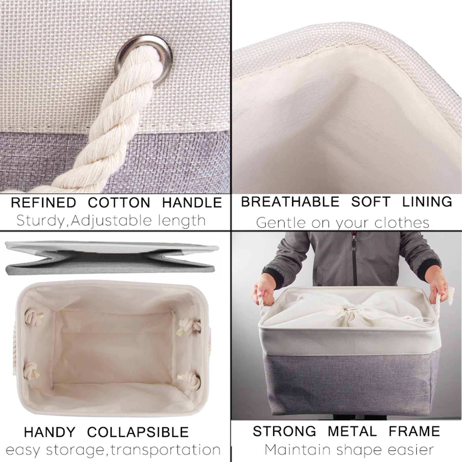 Mangata 3 Stück aufbewahrungskorb Stoff, aufbewahrungsbox gross Schrank, Korb aufbewahrung Stoff mit Seil für Spielzeug, kleiderschrank, Regale, Kleidung (Faltbare,XXL, Grau Weiss)