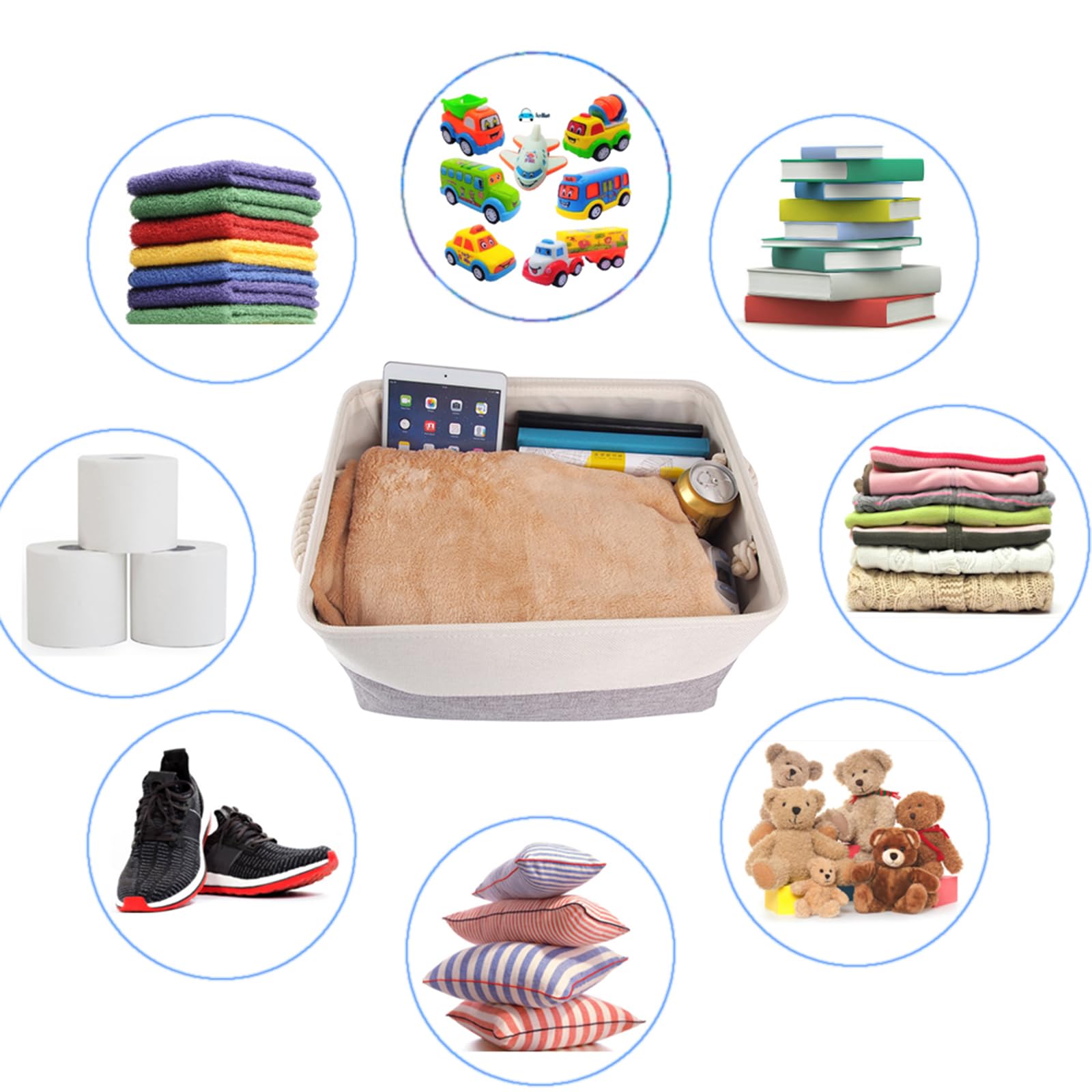 Mangata aufbewahrungskorb Stoff 3 Stück, aufbewahrungsbox gross Schrank, Korb aufbewahrung Stoff mit Seil für Spielzeug, kleiderschrank, Regale, Kleidung (Faltbare, Grau Weiss)