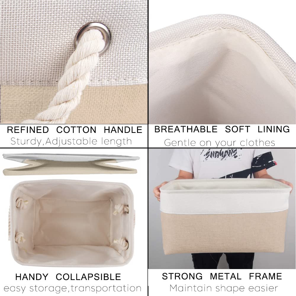 Mangata 3 Stück aufbewahrungskorb Stoff, aufbewahrungsbox gross Schrank, Korb aufbewahrung Stoff mit Seil für Spielzeug, kleiderschrank, Regale, Kleidung (Faltbare,XXL, Khaki-Weiss)