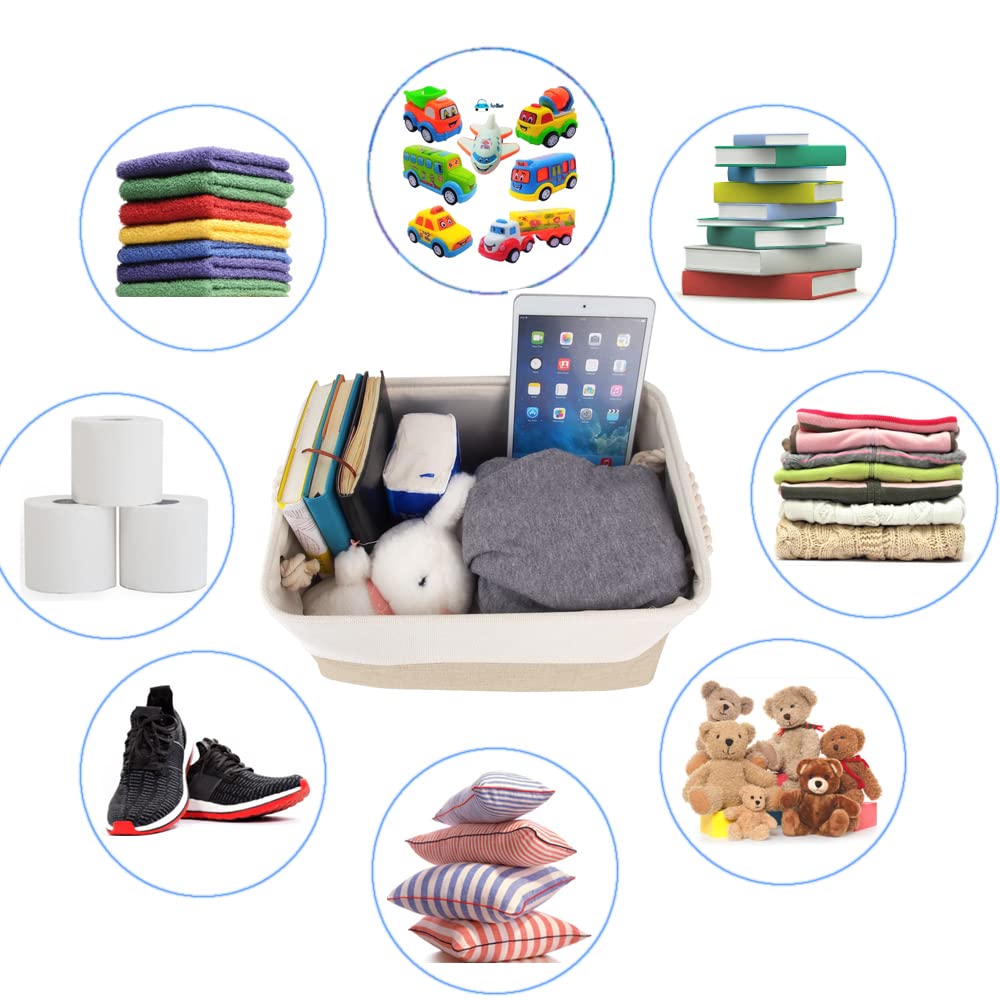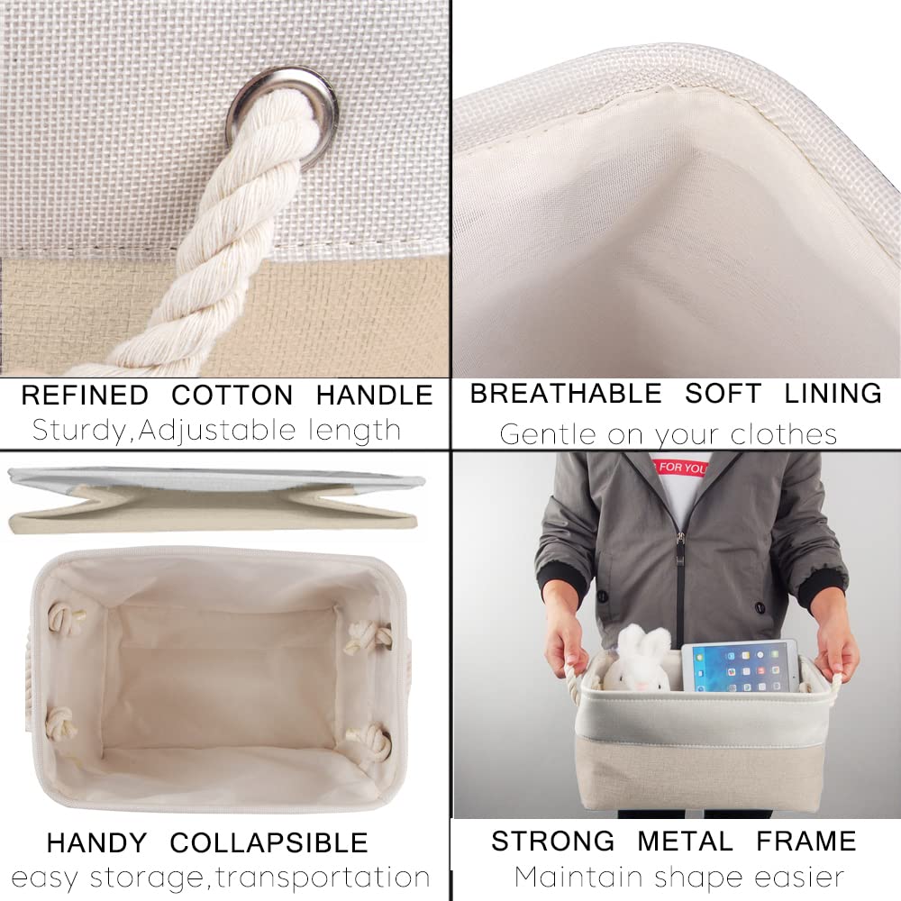Mangata Grosse Aufbewahrungsbox 3er Set, Leinenstoff Aufbewahrungskörbe mit Griffen für Schränke, Kleiderschrank, Regale, Badezimmer, Kleidung, Spielzeug, Handtuch (38x28x24cm, Hell Khaki Weiss)