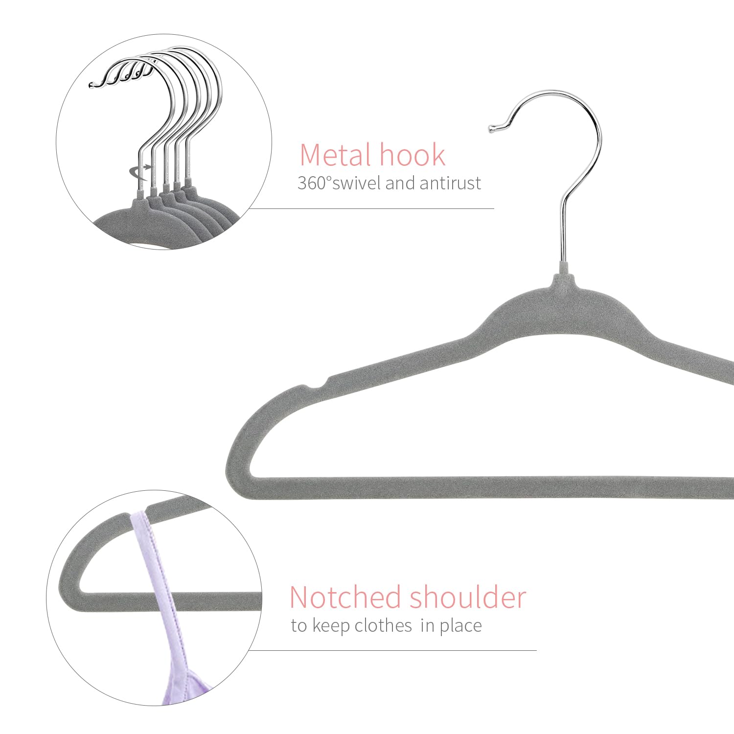 Bevor Sie die Samtkleiderbügel für Babys verwenden, blasen Sie mit einem Haartrockner darüber oder halten Sie sie über Wasser und trocknen Sie sie dann an der Luft, um effektiv die Oberfläche von losen Fasern zu entfernen. Aufgrund der Eigenschaften der beflockten Kleiderbügel haften die neu produzierten Kleiderbügel und ihre Taschen an ein paar schwimmenden Haaren, was ein normales Phänomen ist, kein Qualitätsproblem.