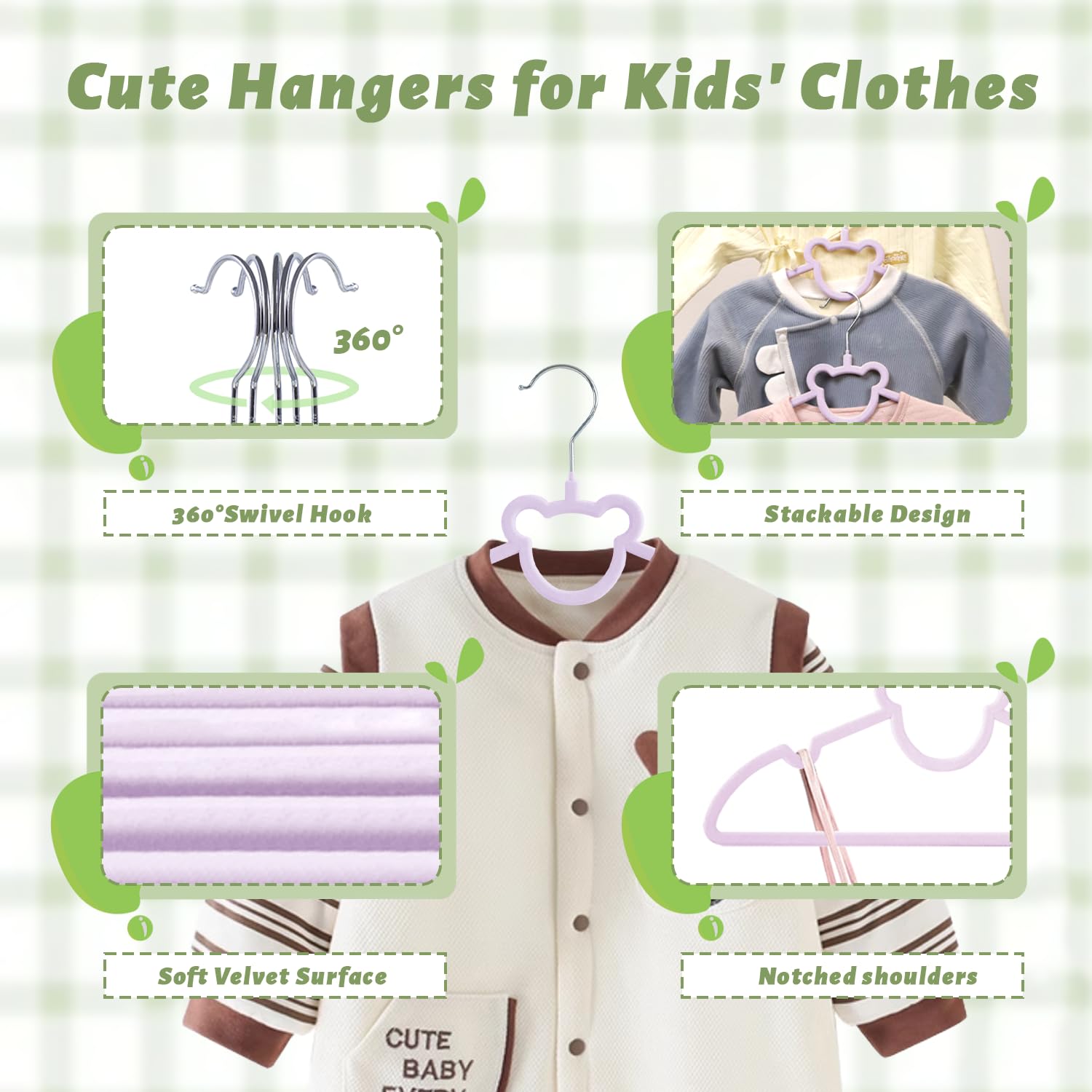 ManGotree 32,5 cm Kinder-Samtbügel, rutschfeste Filz-Babykleiderbügel, Niedliche Bärenbügel für das Kinderzimmer, Platzsparende Kleinkindbügel für den Kinderkleiderschrank (20 Stück, Lila)