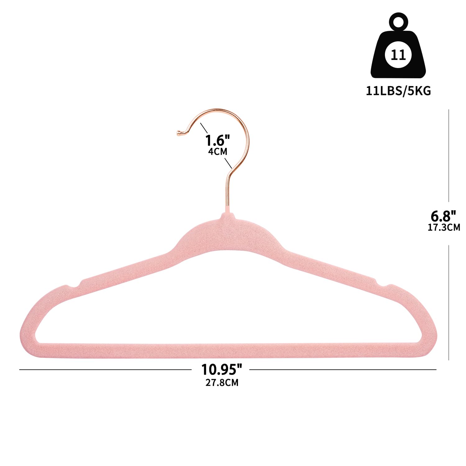 ManGotree Baby Samt Kleiderbügel mit Roségold-Haken, 28cm Kinder Grösse, 360 Grad drehbar, Ultra dünn und kein Schlupf Design, 15 Pack (Hellrosa)