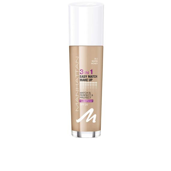 Manhattan 3in1 Easy Match Make Up, ölfreie Foundation für einen makellosen Teint, Farbe 38.2 warm honey, 30ml
