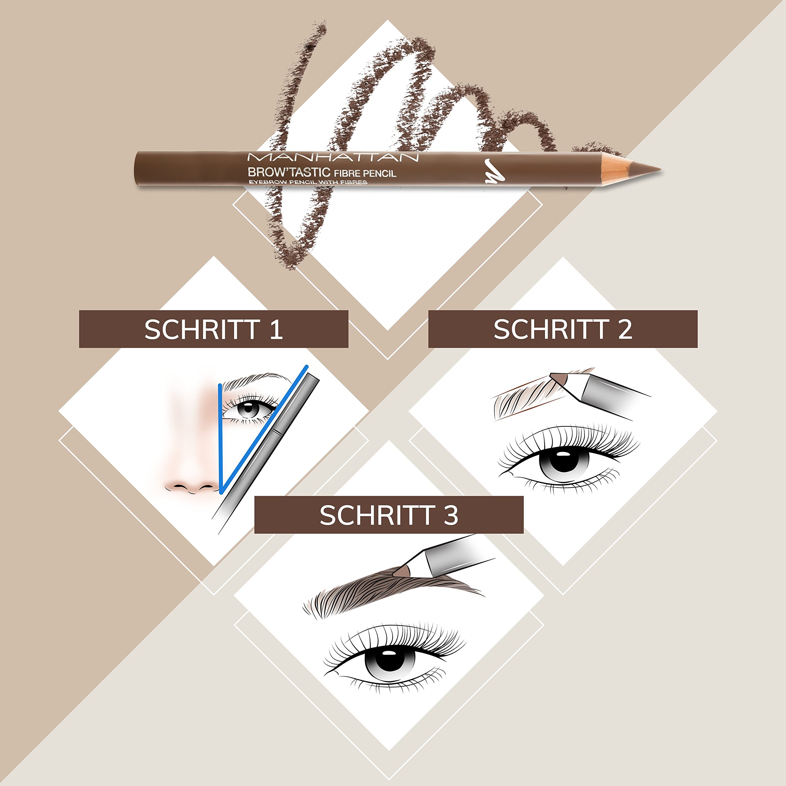 Manhattan Brow'Tastic Augenbrauenstift – Brauner Eyebrow Pencil mit auffüllenden Fasern für dichter wirkende, definierte Augenbrauen – Farbe Medium 002 – 1 x 1.08g (Packung mit 2)