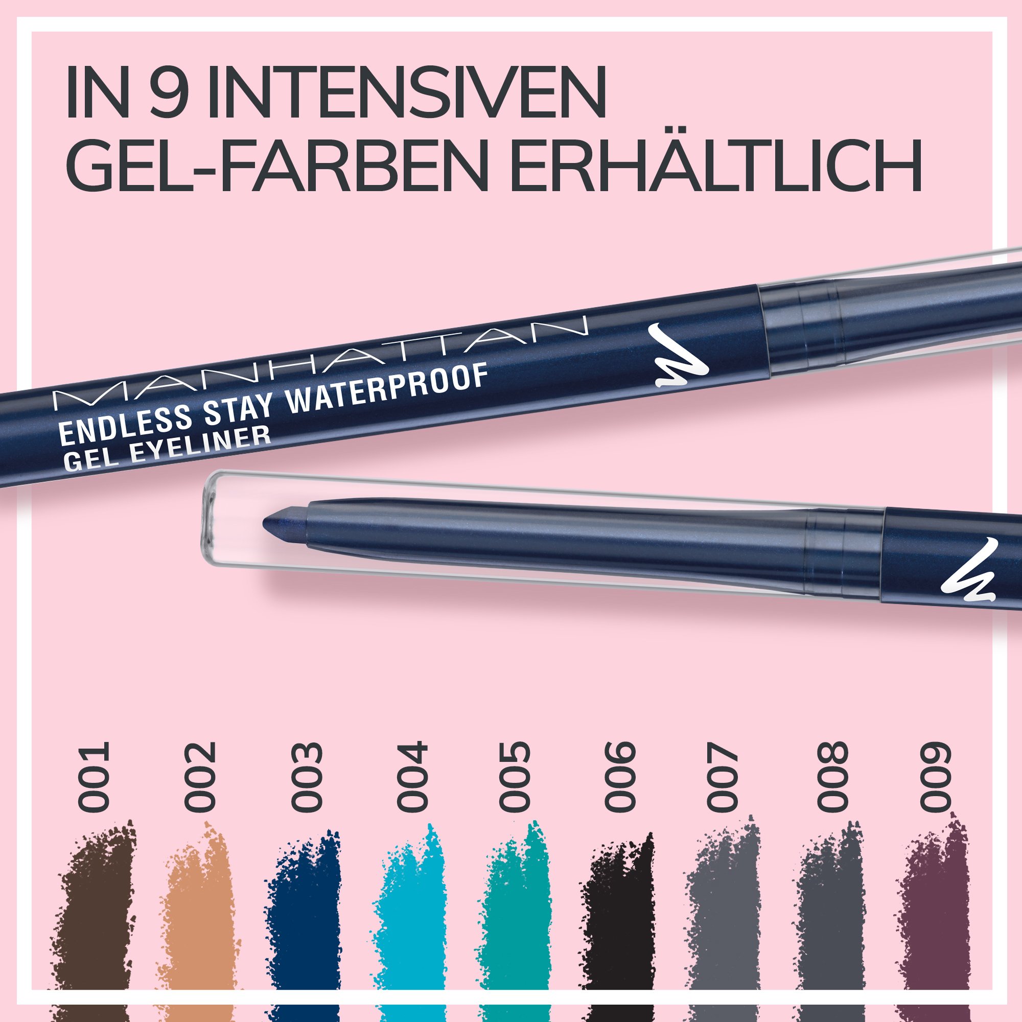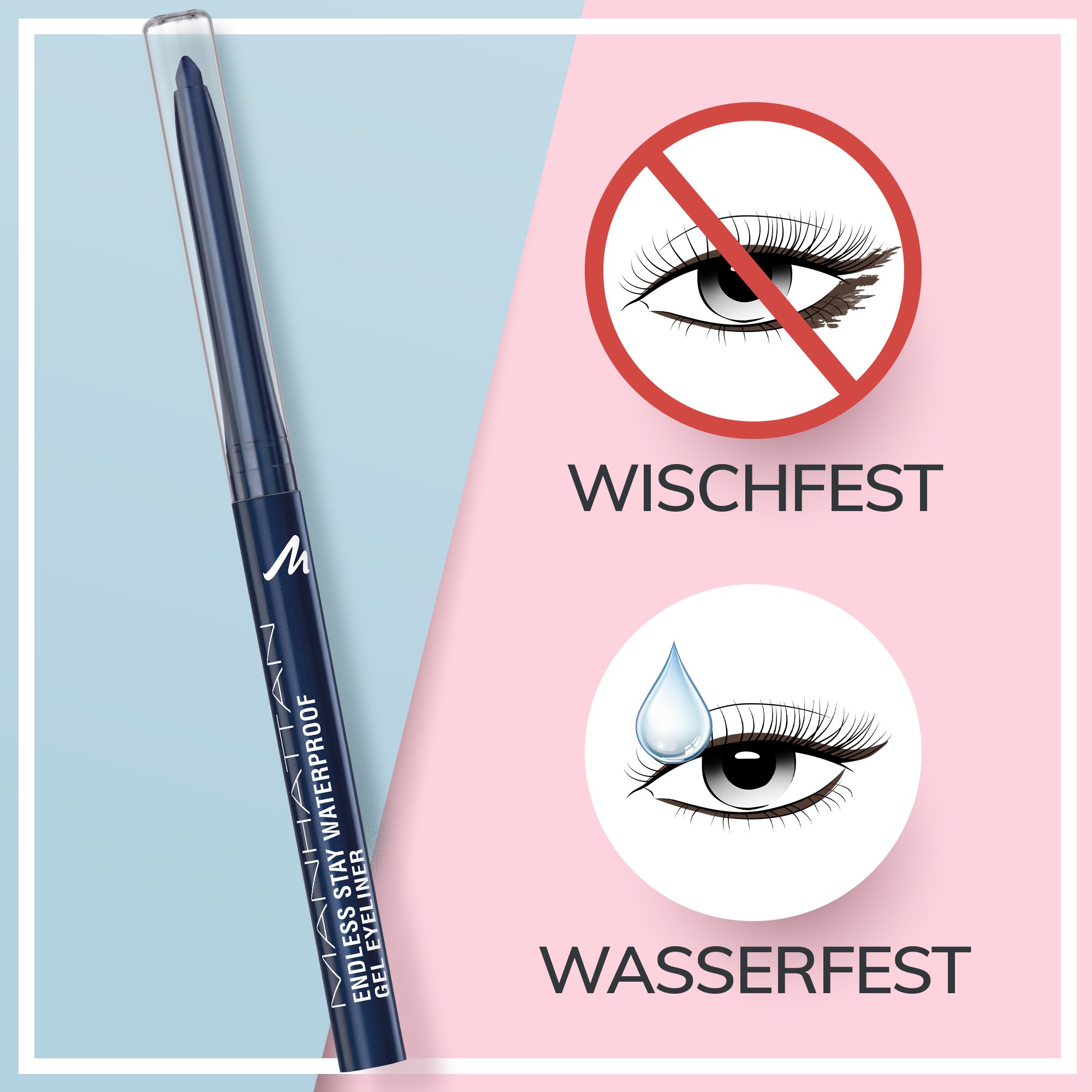 Manhattan Endless Stay Waterproof Gel Eyeliner - Ciemnoniebieski zakręcany eyeliner w żelu bez temperowania - Color Deep Ocean 003-1 x 2,6g (Packung mit 2)