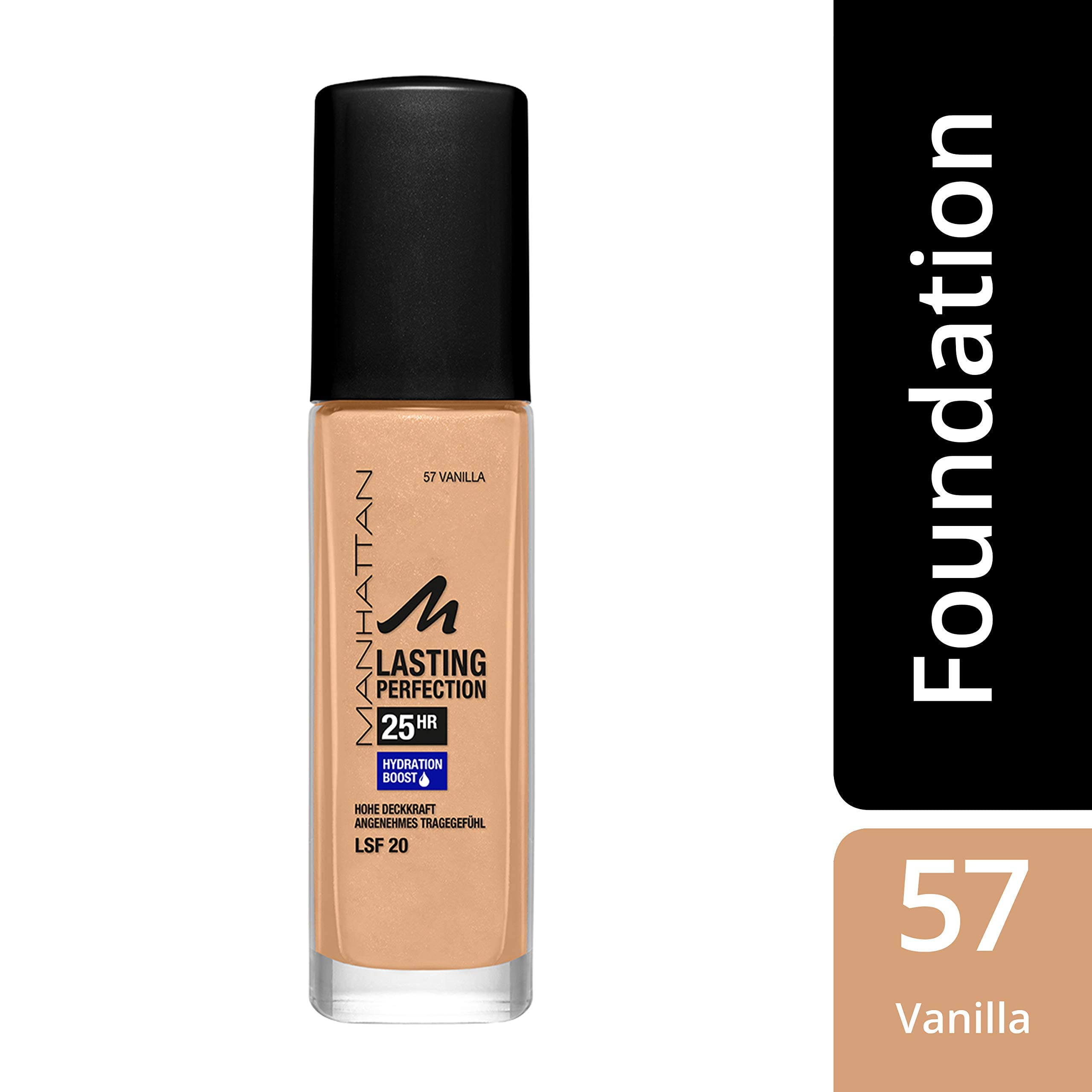 Manhattan Lasting Perfection 25 Stunden Make up, Vanilla 57, feuchtigkeitsspendende Foundation, langanhaltend, hohe Deckkraft, für einen makellosen Teint, 30 ml