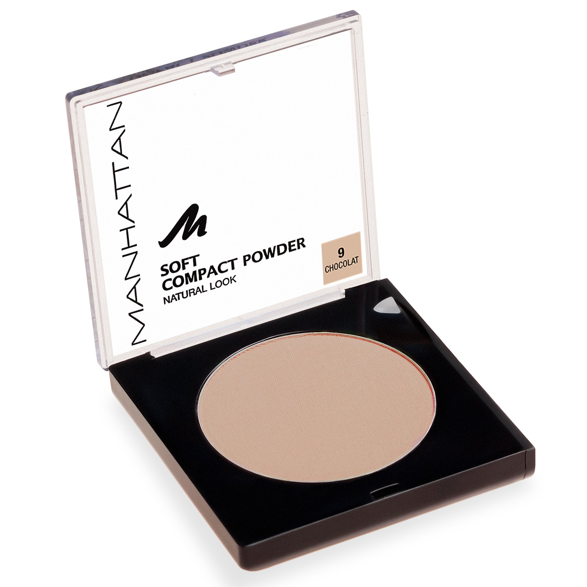 Manhattan Soft Compact Powder, Helles Kompakt Puder mit Puderquaste für einen matten, ebenmässigen Teint, Farbe Chocolat 9, 1 x 9g (Packung mit 2)
