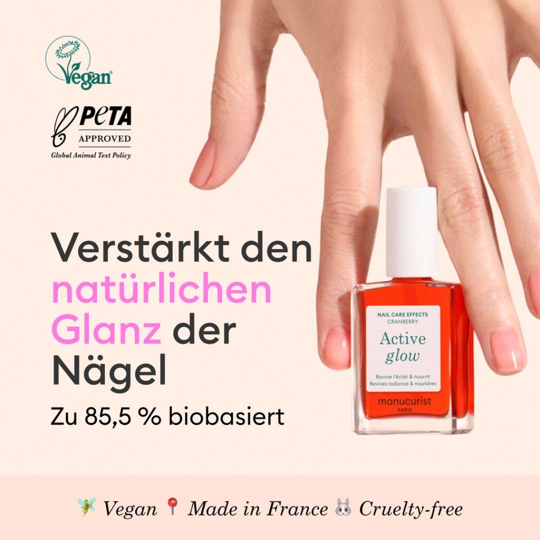 MANUCURIST Active Glow Cranberry – Clear Coral Perfector Nagellack & Pflege, vegan, Made in France