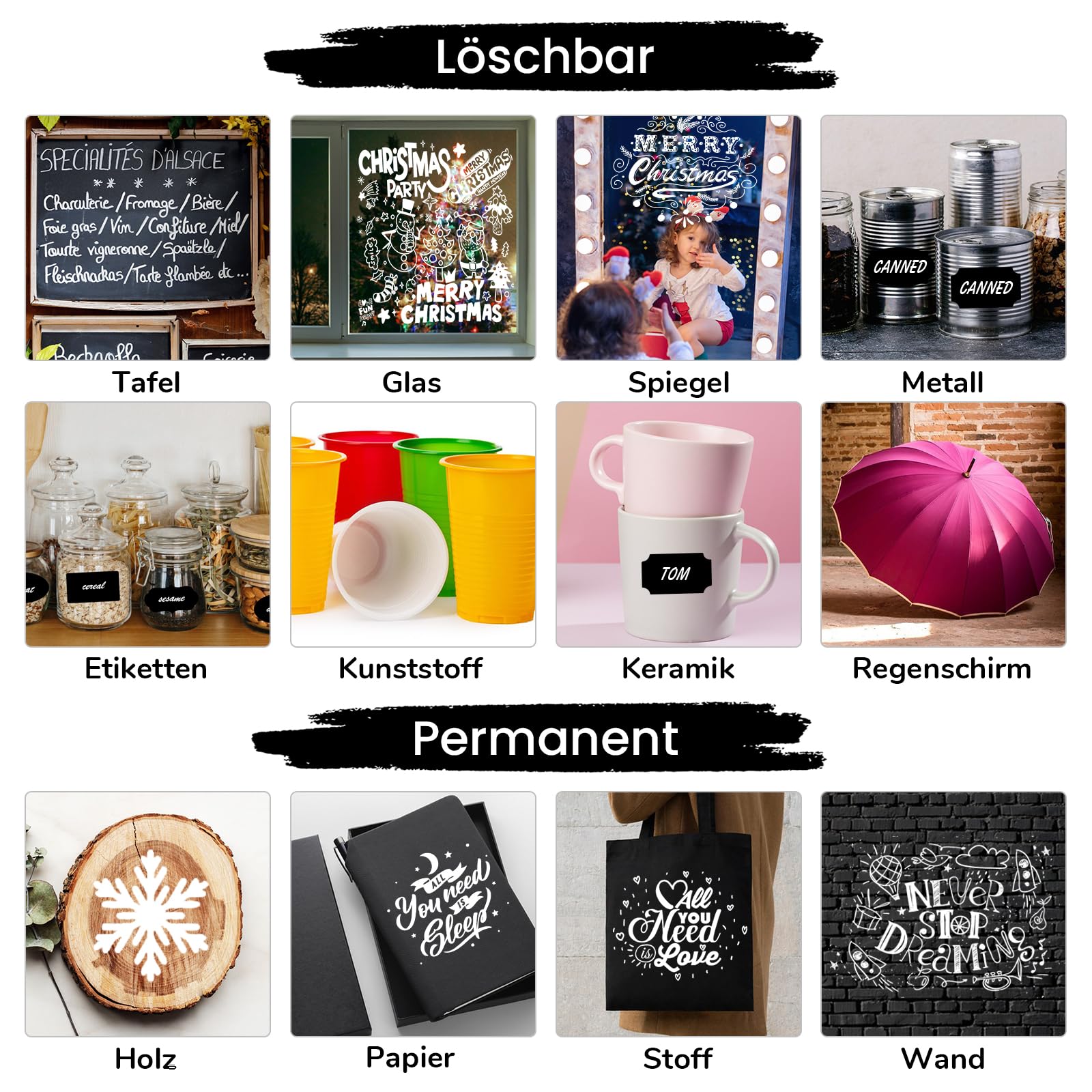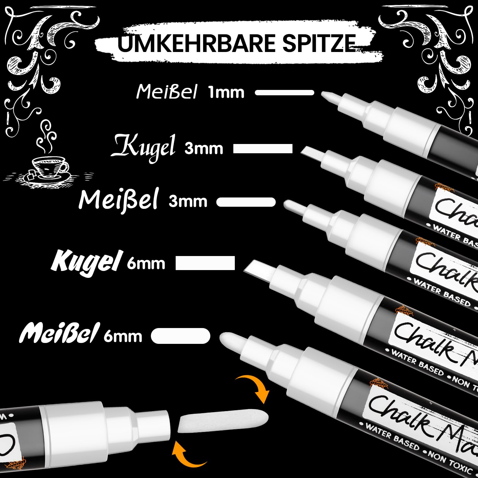 Maqhpu Weiss Kreidestifte für Tafel Abwaschbar, 6 Stück Kreidestifte und 45pcs Kreidetafel Labels, Fensterstifte Whiteboard Marker Kreidemarker Tafelstifte für Glas & Gewürzgläser (1mm, 3mm, 6mm)