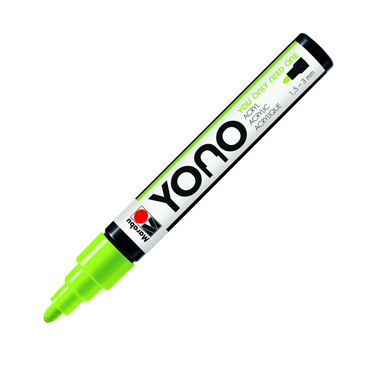 Marabu 12400103365 - YONO Marker, Neon-Grün 365, vielseitiger Acrylstift mit japanischer Rundspitze 1,5-3 mm, wasserbasiert, lichtecht und wasserfest, für nahezu alle Untergründe (Packung mit 2)
