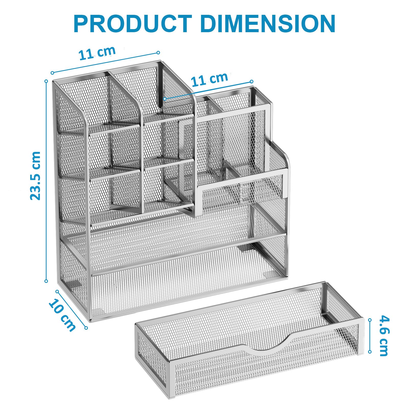 Marbrasse Netz Schreibtisch-Organizer,Multifunktionaler Stiftehalter mit Schublade,Aufbewahrung Regal für Schul Heim Büro Bedarf (Sliber)
