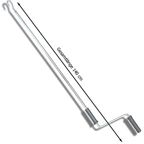 markiso Markisenkurbel 140 cm Verzinkt – Kurbel für Markise mit Fleischerhaken – Kurbelgestänge verzinkter Stahl, Rostfrei, Ergonomische Griffe, Freilaufend für Leichte Bedienung