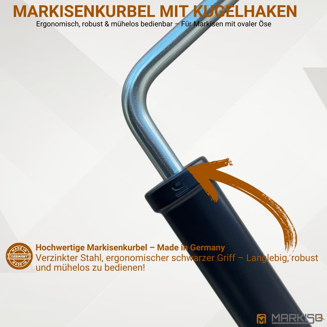 markiso Markisenkurbel 160 cm Verzinkt – Kurbel für Markise mit Kugelhaken/Kugelkopf – Kurbelgestänge verzinkter Stahl, Rostfrei, Ergonomische Griffe, Freilaufend für Leichte Bedienung