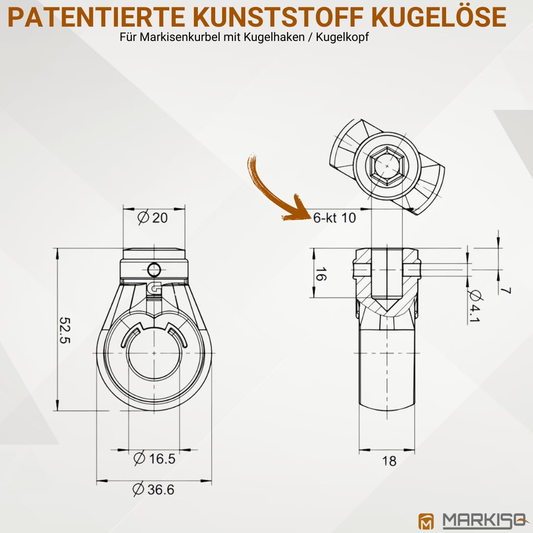 markiso® Markisenkurbel Kugelöse – Ersatz-Öse für Markisengetriebe [Made in Germany] – 10 mm Innensechskant – Robuste Kunststofföse für Kugelhaken & Kugelkopf