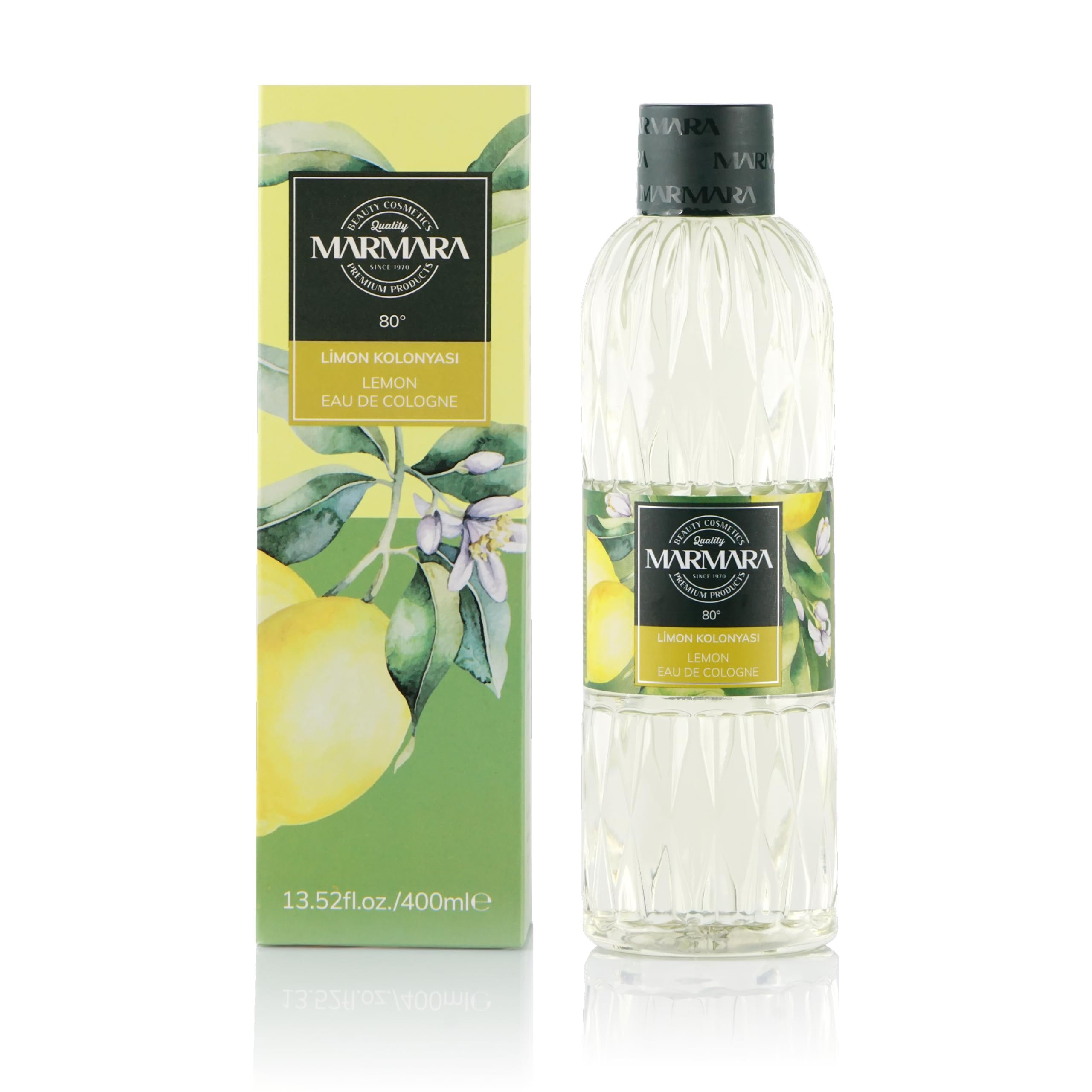 Marmara Kolonya Zitrone 400ml mit Box | Türkisches Duftwasser | Aftershave | türkisches Hand Wasser | Rasierwasser | Kölnisch Wasser | traditionell türkisch | Eau de Cologne Lemon | 80 Alkohol