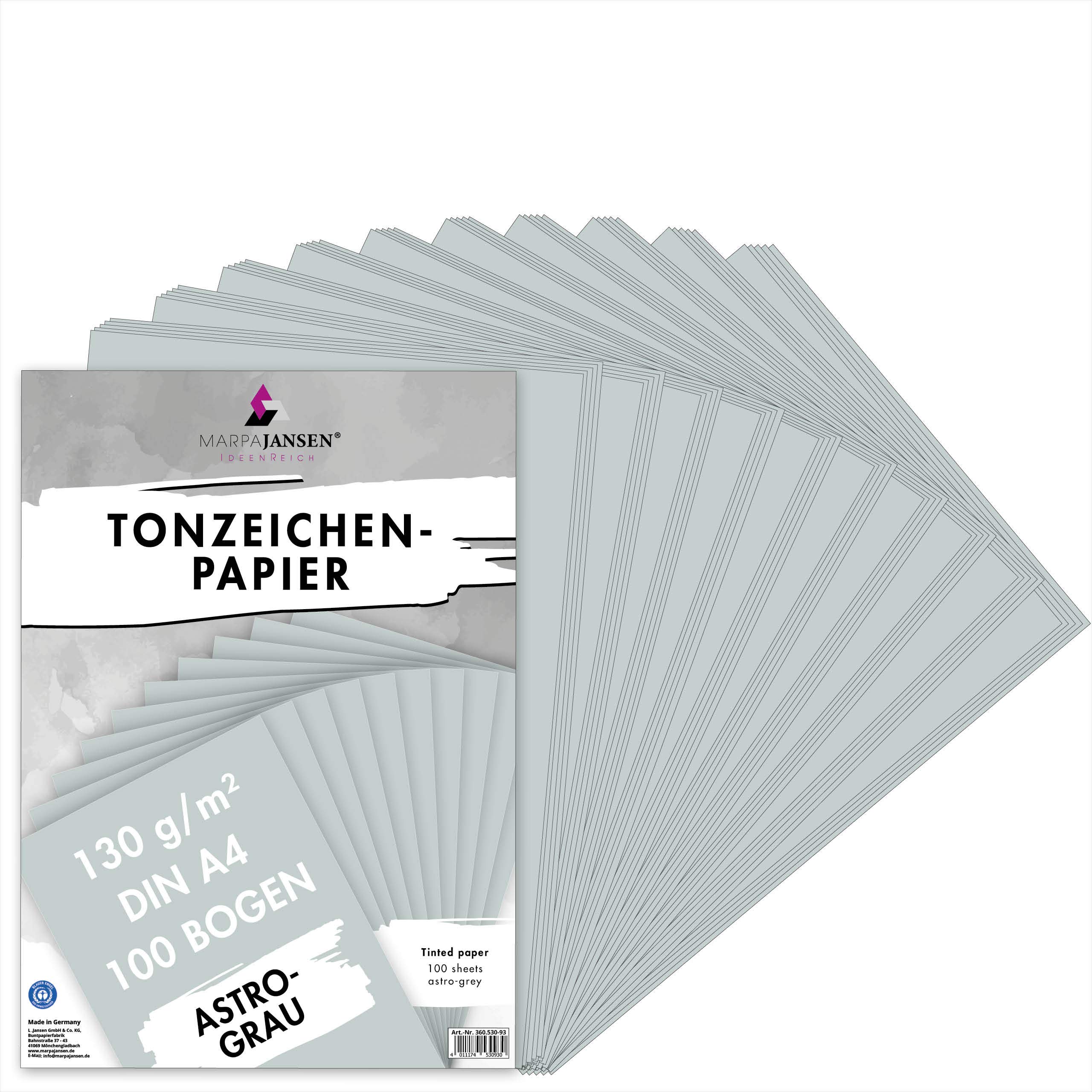 MarpaJansen Tonzeichenpapier - (DIN A4, 100 Bogen, 130 g/m²) - zum Basteln & Gestalten - Zertifizierung durch ,,Blauer Engel" - astro-grau