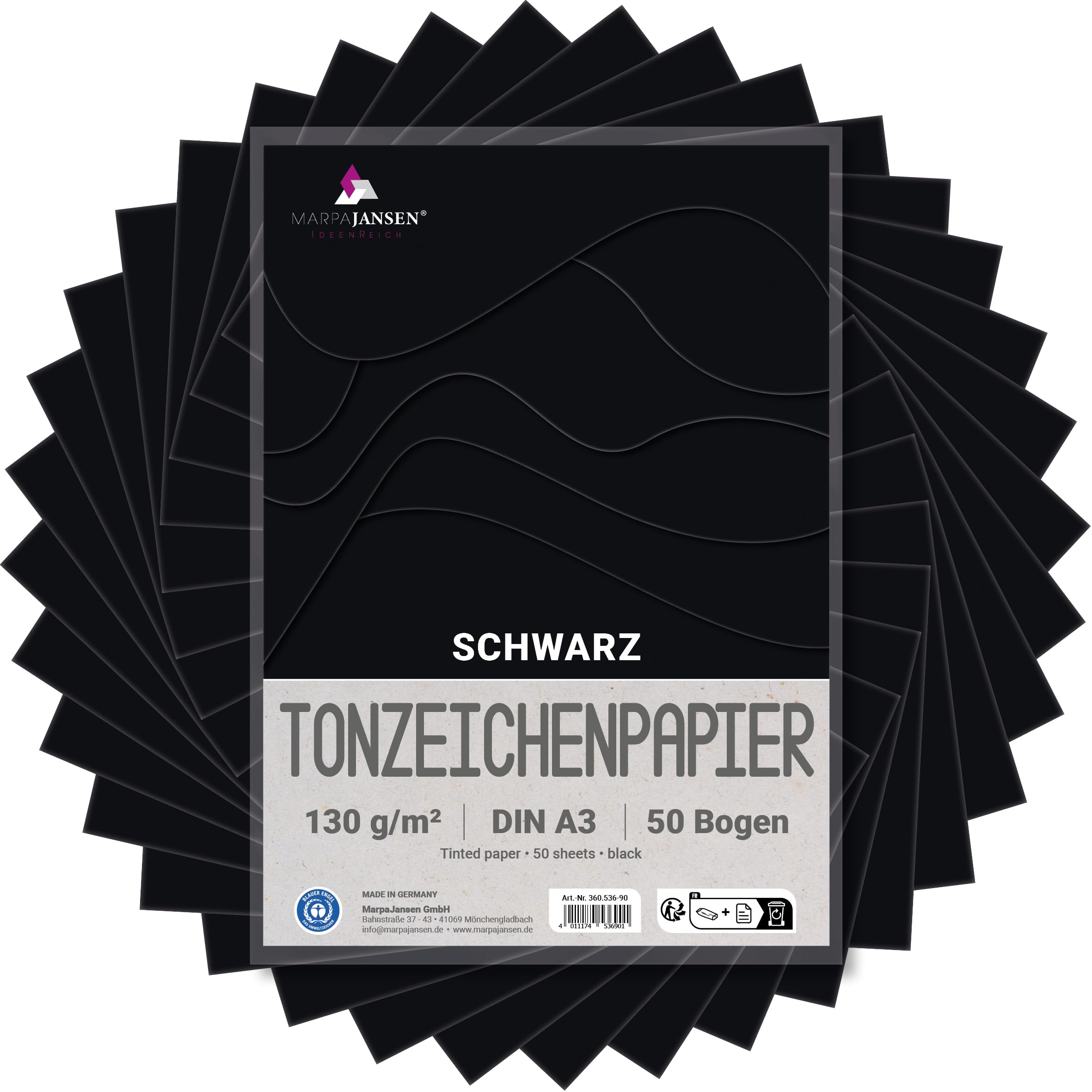 MarpaJansen Tonzeichenpapier Schwarz Matt, DIN A3, 50 Bogen, 130g/m² Blauer Engel zertifiziert