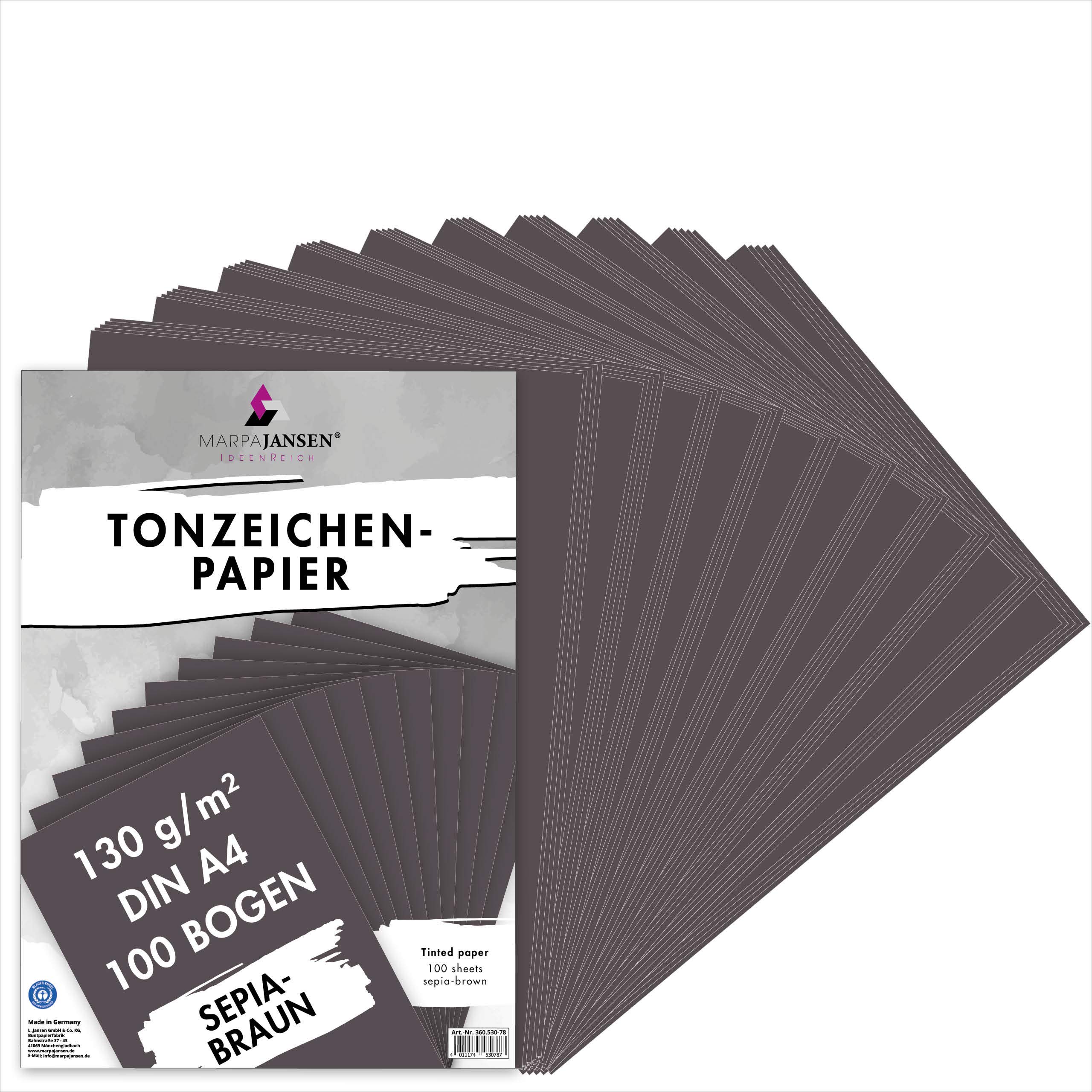 MarpaJansen Tonzeichenpapier - (DIN A4, 100 Bogen, 130 g/m²) - zum Basteln & Gestalten - Zertifizierung durch ,,Blauer Engel" - sepiabraun