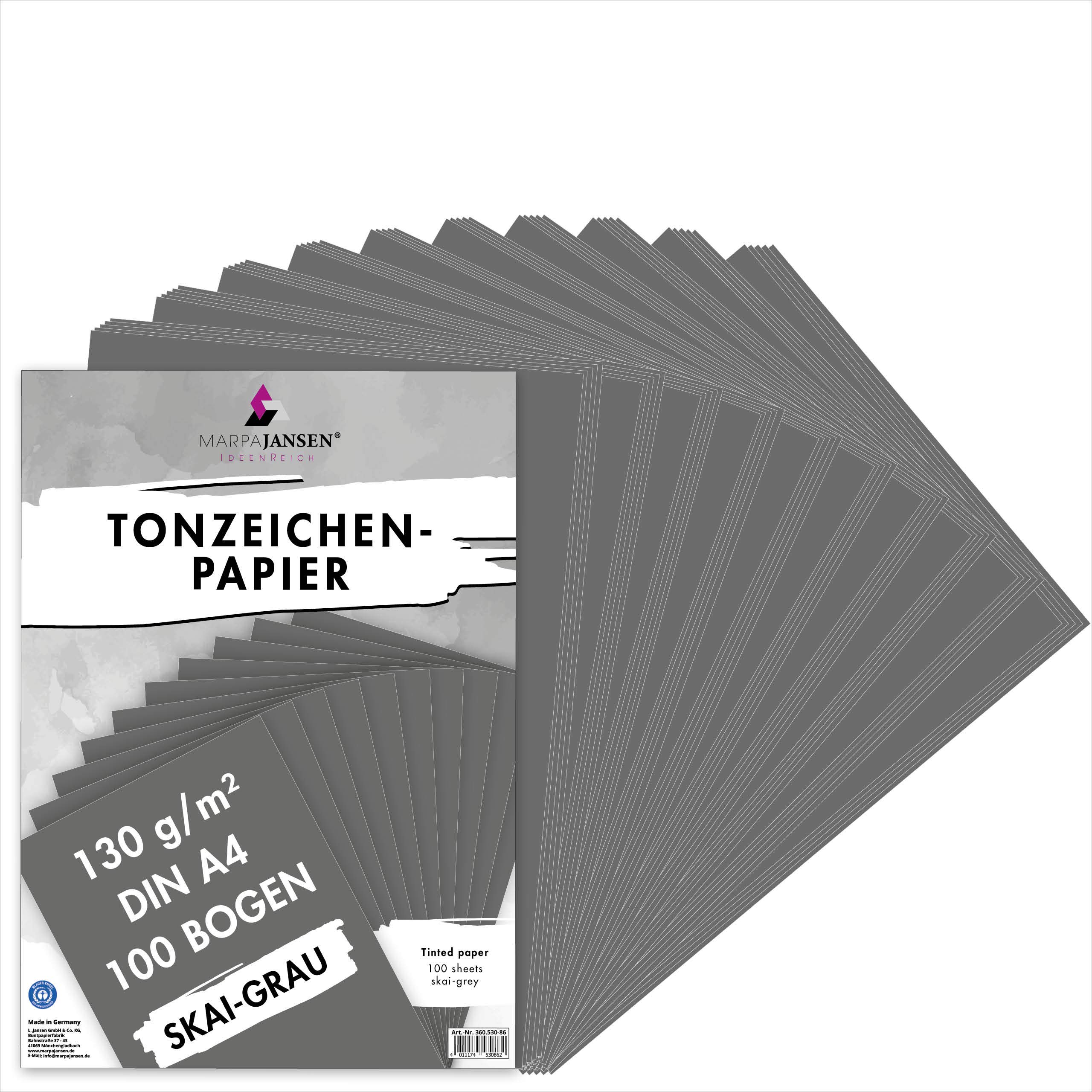MarpaJansen Tonzeichenpapier - (DIN A4, 100 Bogen, 130 g/m²) - zum Basteln & Gestalten - Zertifizierung durch ,,Blauer Engel" - skai-grau