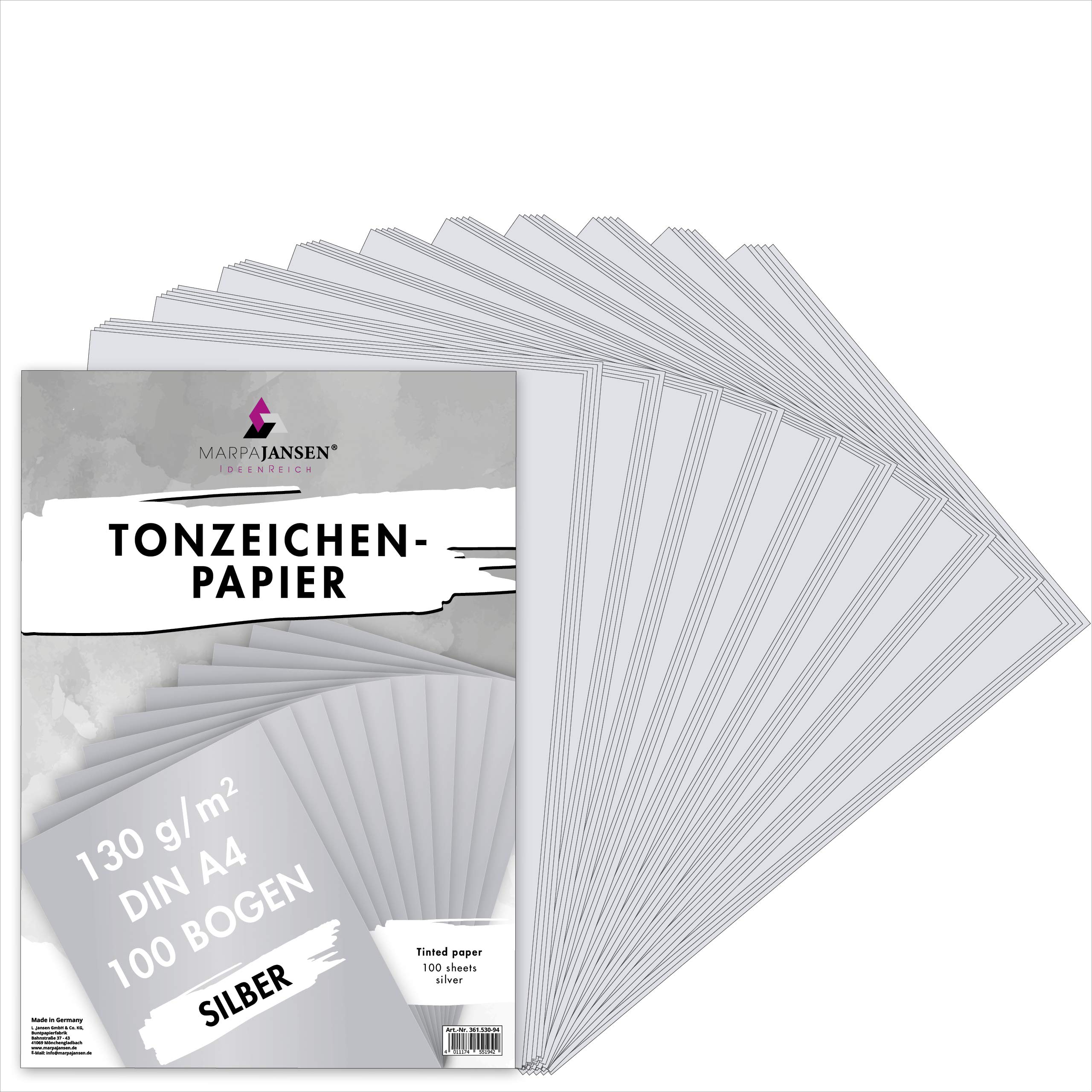 MarpaJansen 361.530-94 Tonzeichenpapier - (DIN A4, 100 Bogen, 130 g/m²) - zum Basteln & Gestalten - silber, Mehrfarbig, One Size