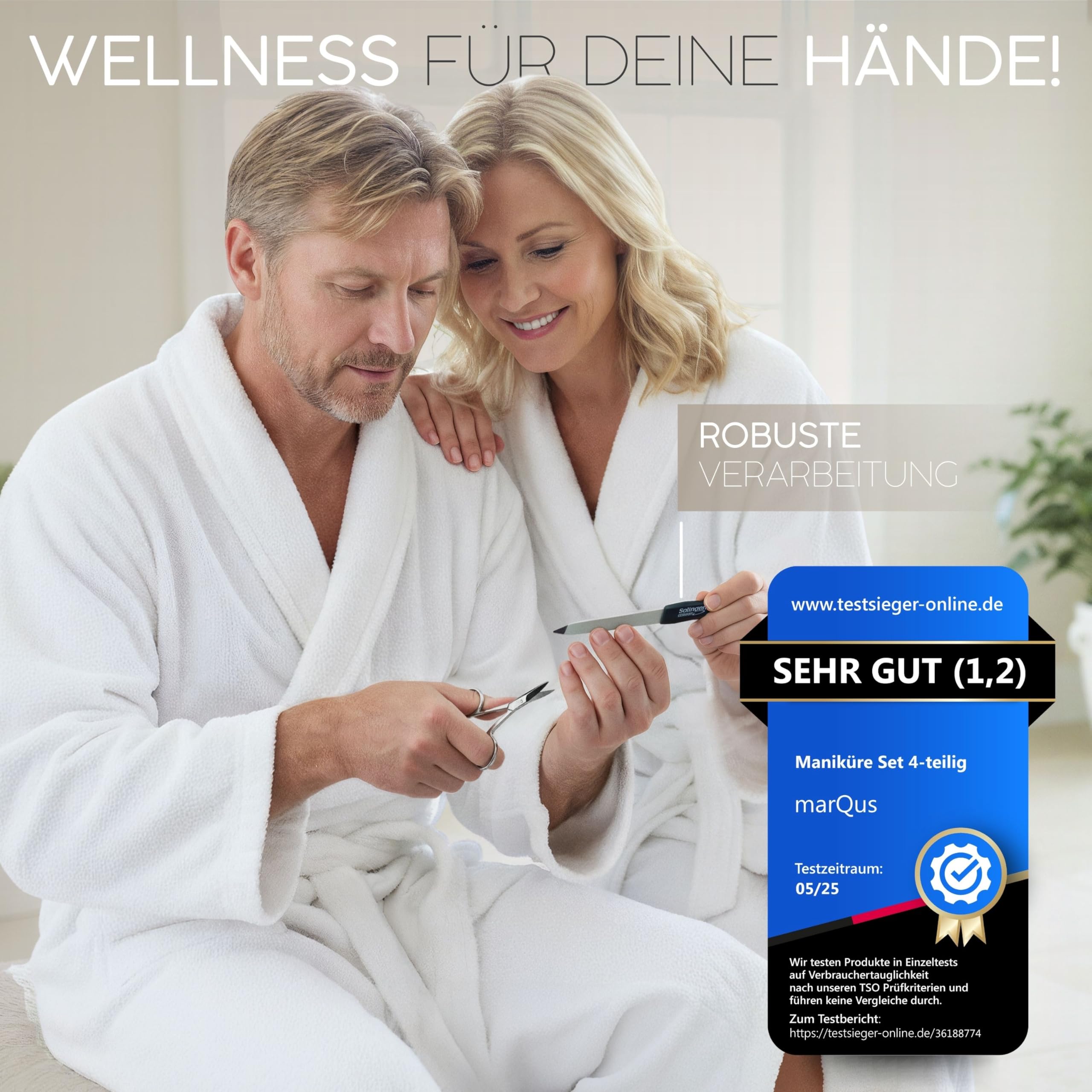 Das marQus Manikuere Set ist ein kompaktes 4-teiliges Nagelpflegeset fuer die regelmaessige Hand- und Nagelpflege. Durch das handliche Format eignet es sich besonders fuer unterwegs, auf Reisen oder fuer die Aufbewahrung in Taschen.