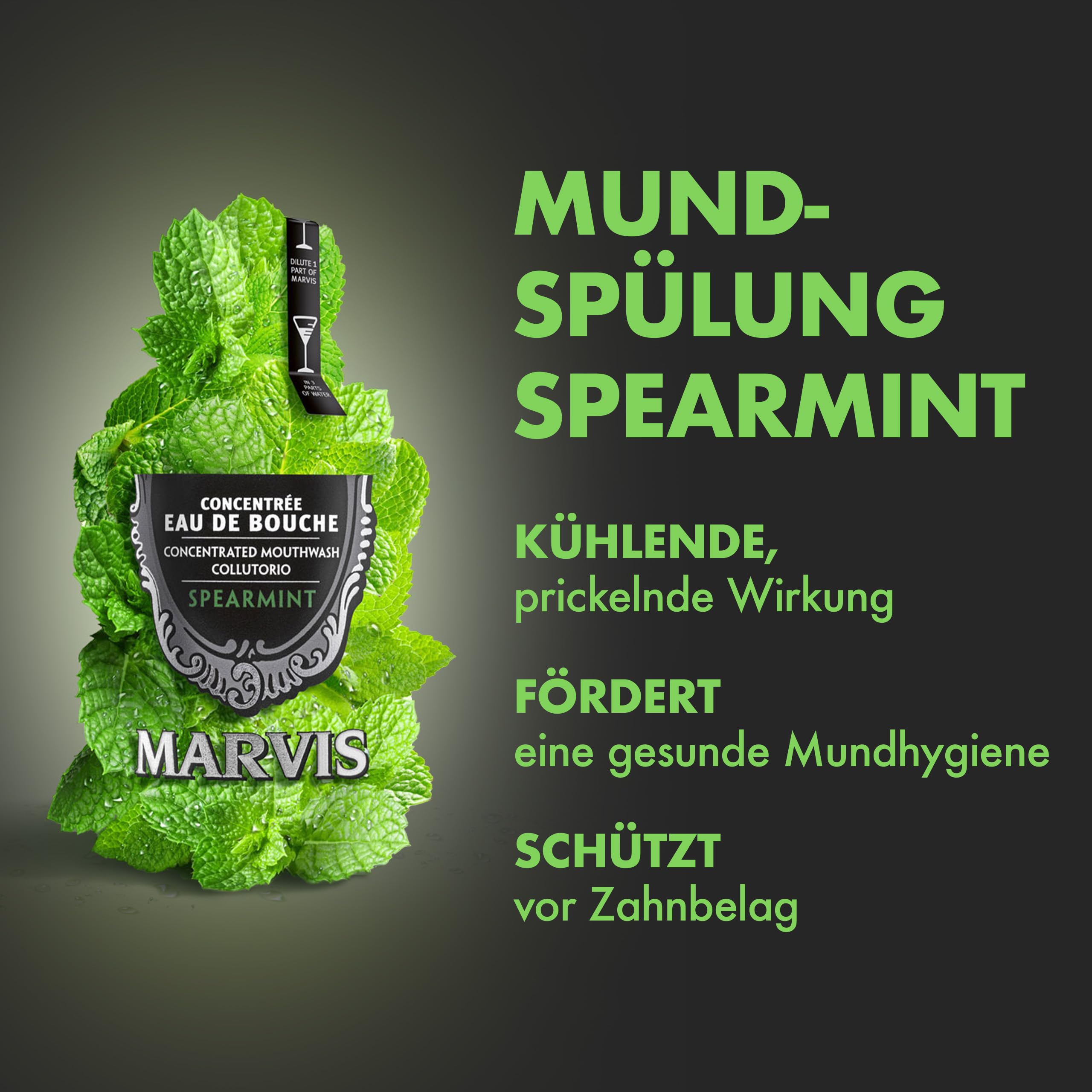 Marvis Spearmint Mundwasser Konzentrat, 120 ml, alkoholfreie Mundspülung fördert einen langanhaltend frischen Atem, gesundes Zahnfleisch und reduziert Zahnbelag