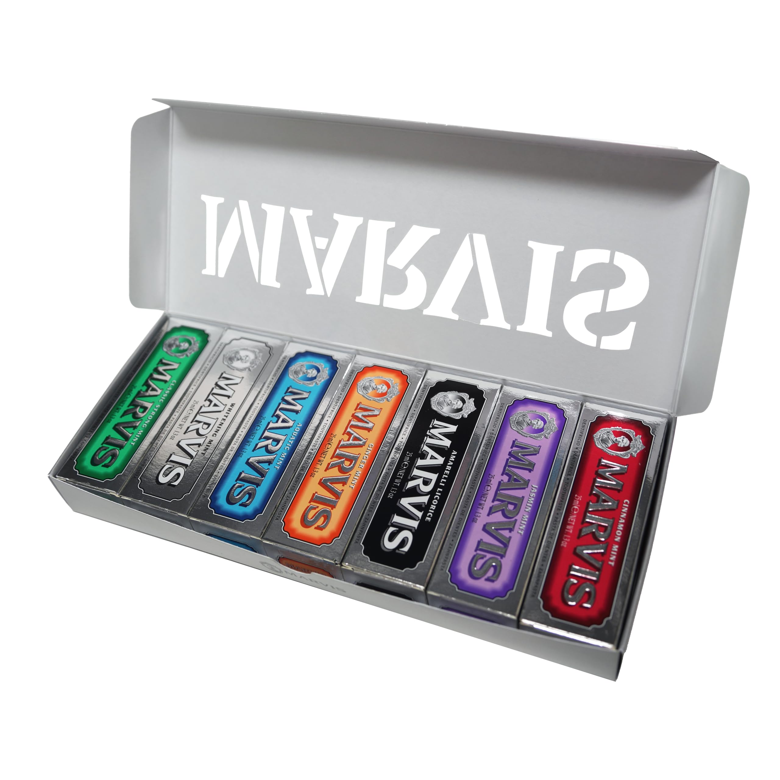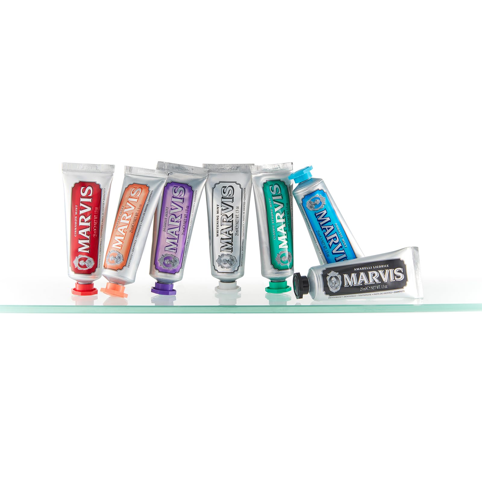 Marvis Zahnpasta Flavour Collection Set, 25 ml (7er Pack), Zahnpasta Reisegrösse Set mit 7 aromatischen Zahncremes für langanhaltende Frische, Zahnpasta mit Geschmack