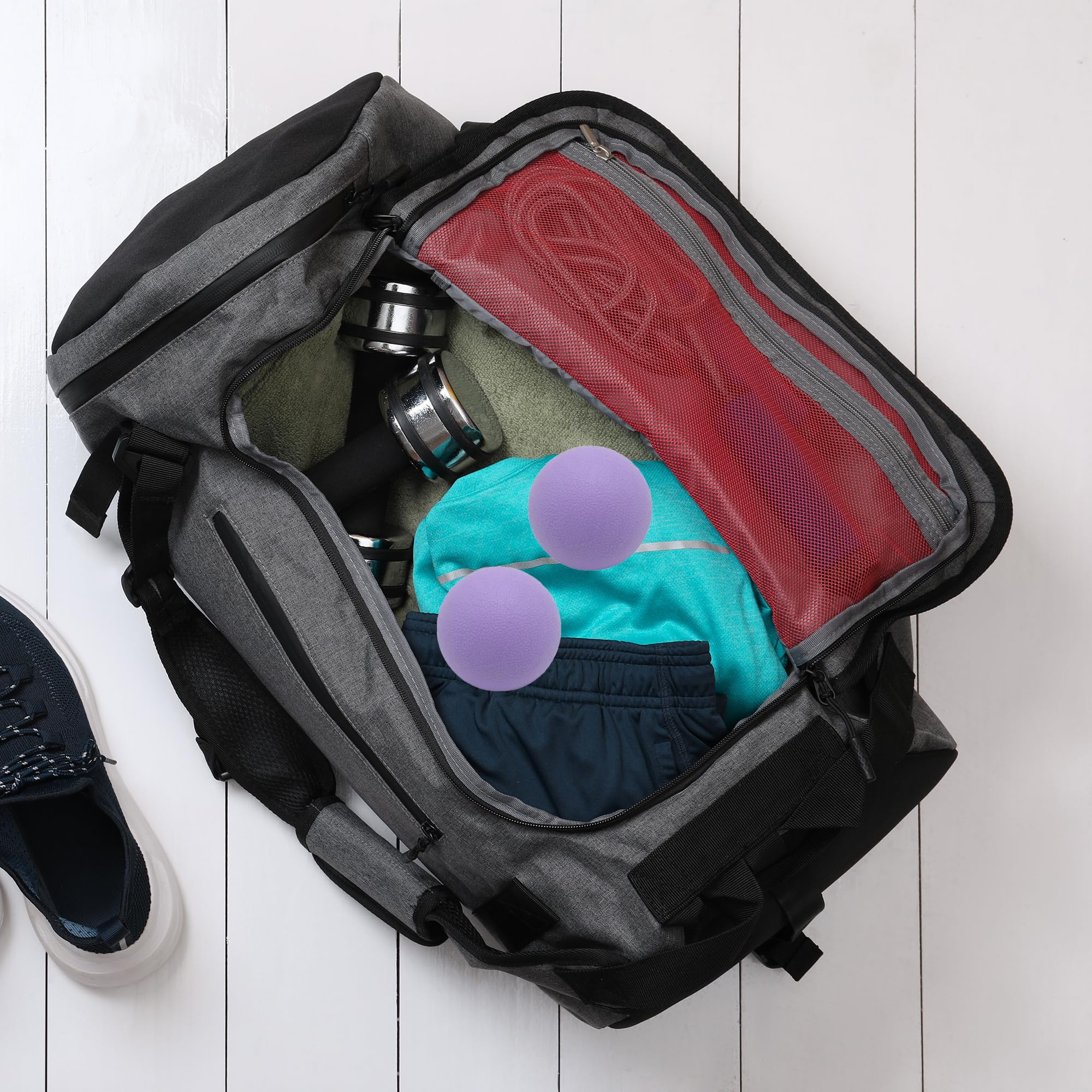 Die feste Oberfläche erlaubt punktuellen Druck auf verspannte Muskelpartien, wodurch Verklebungen und Verhärtungen gelöst werden können. Durch die kompakte Grösse lassen sich die Bälle einfach transportieren und flexibel in Yoga-, Pilates- oder Fitnessroutinen integrieren.