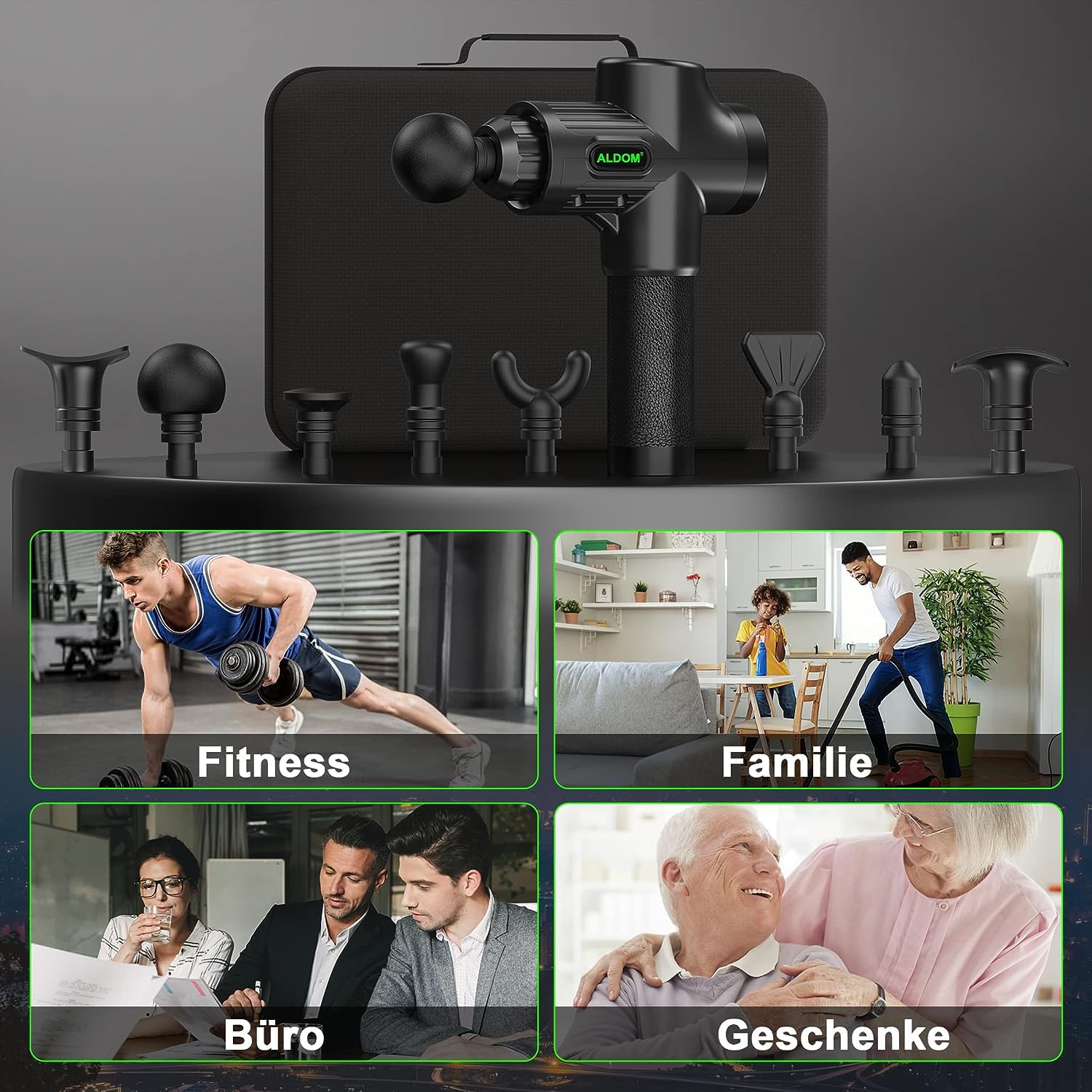 - Powerful Massagepistole: Die verbesserte ALDOM Powerful Massagepistole Massage Gun ist mit einem ultra Leistungsstark Motor ausgestattet, der 1800 bis 4800 U / min erreichen kann, verfügbar für verschiedene Muskelgruppen, hilft bei der Linderung von Muskelkater, entspannt und formt verschiedene Körpermuskelteile.die ein ideales gesundheitsgeschenk für frauen, männer, mütter oder väter ist masagepistoll. Massagegerät ist für jeden geeignet, vom profisportler bis zum freizeitsportler