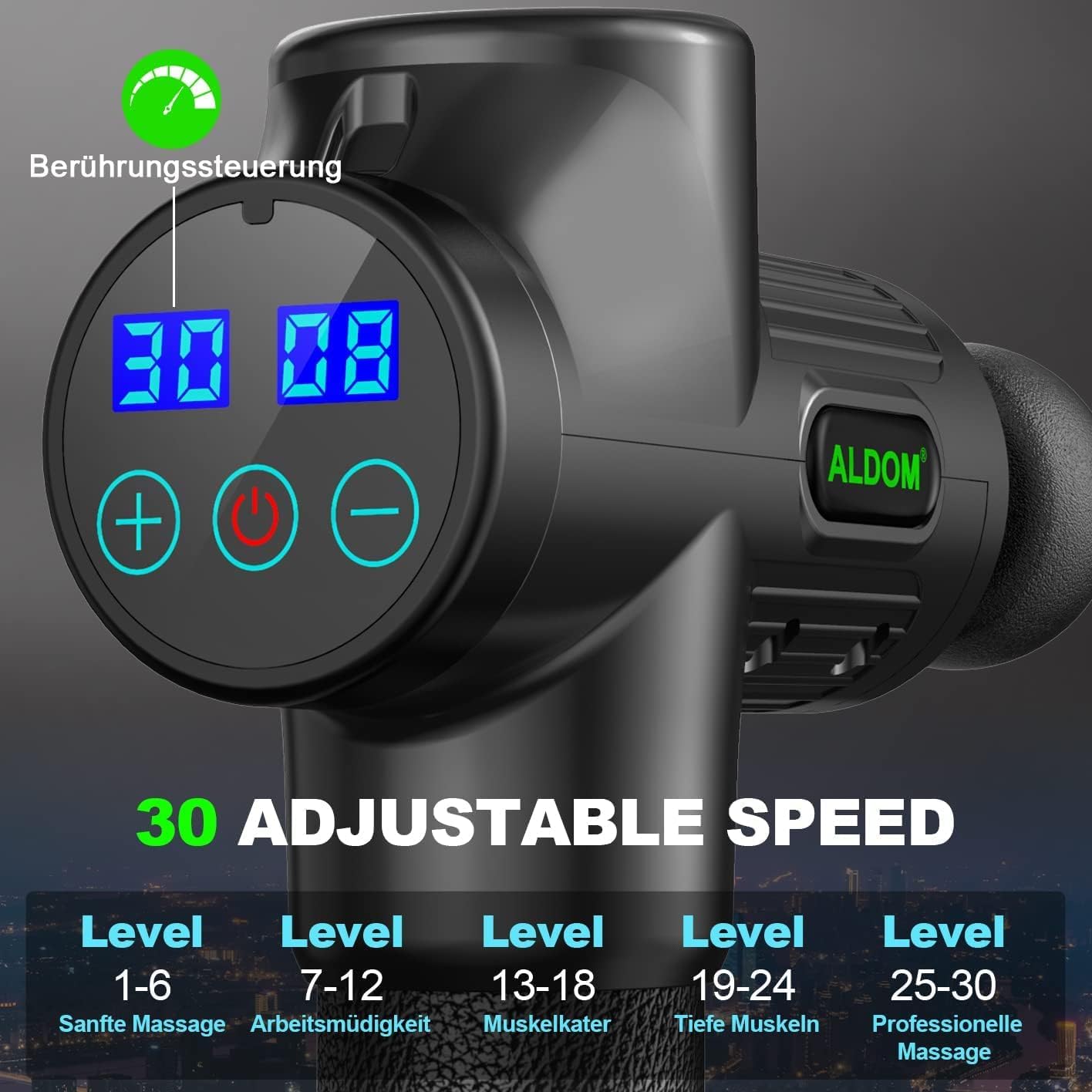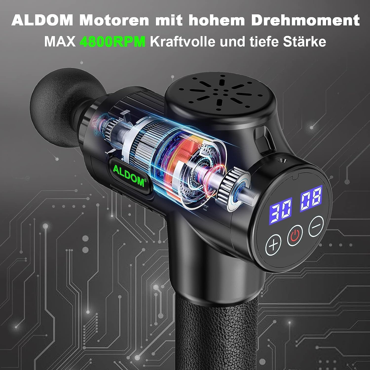 Massagepistole, ALDOM Massage Gun Massagegerät, Muskel Massage pistole mit 30 Geschwindigkeiten bis zu 4800U/min und 8 Massageköpfen, Elektrische Handmassagegeräte Geschenke für Männer Frauen