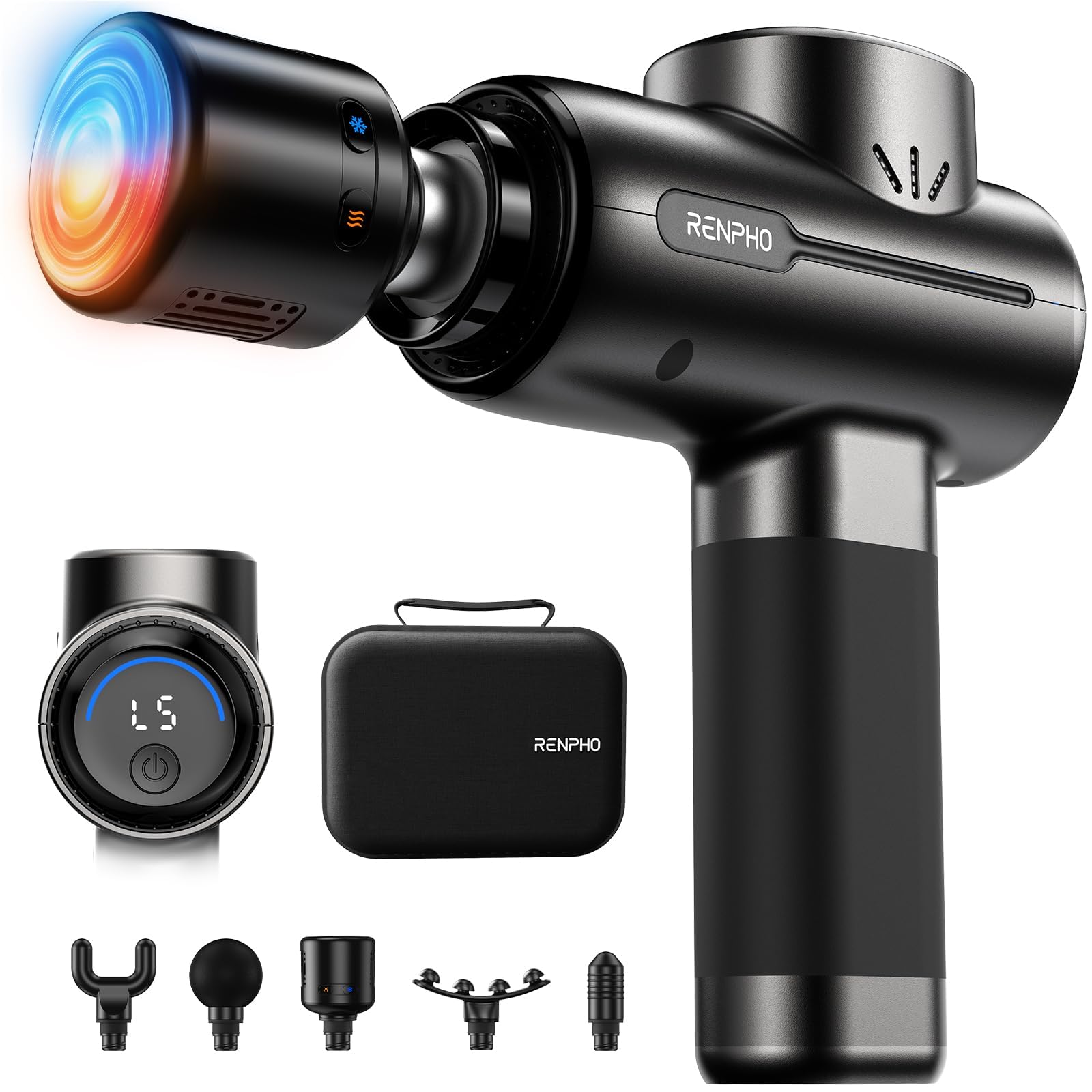 RENPHO Massagepistole mit Wärme und Kälte, Massage Gun mit App und 5 Massageköpfe, Tragbare Percussion Elektrische Handmassagepistole, Muskelmassagepistole für Männer und Frauen, Active+ Thermacool