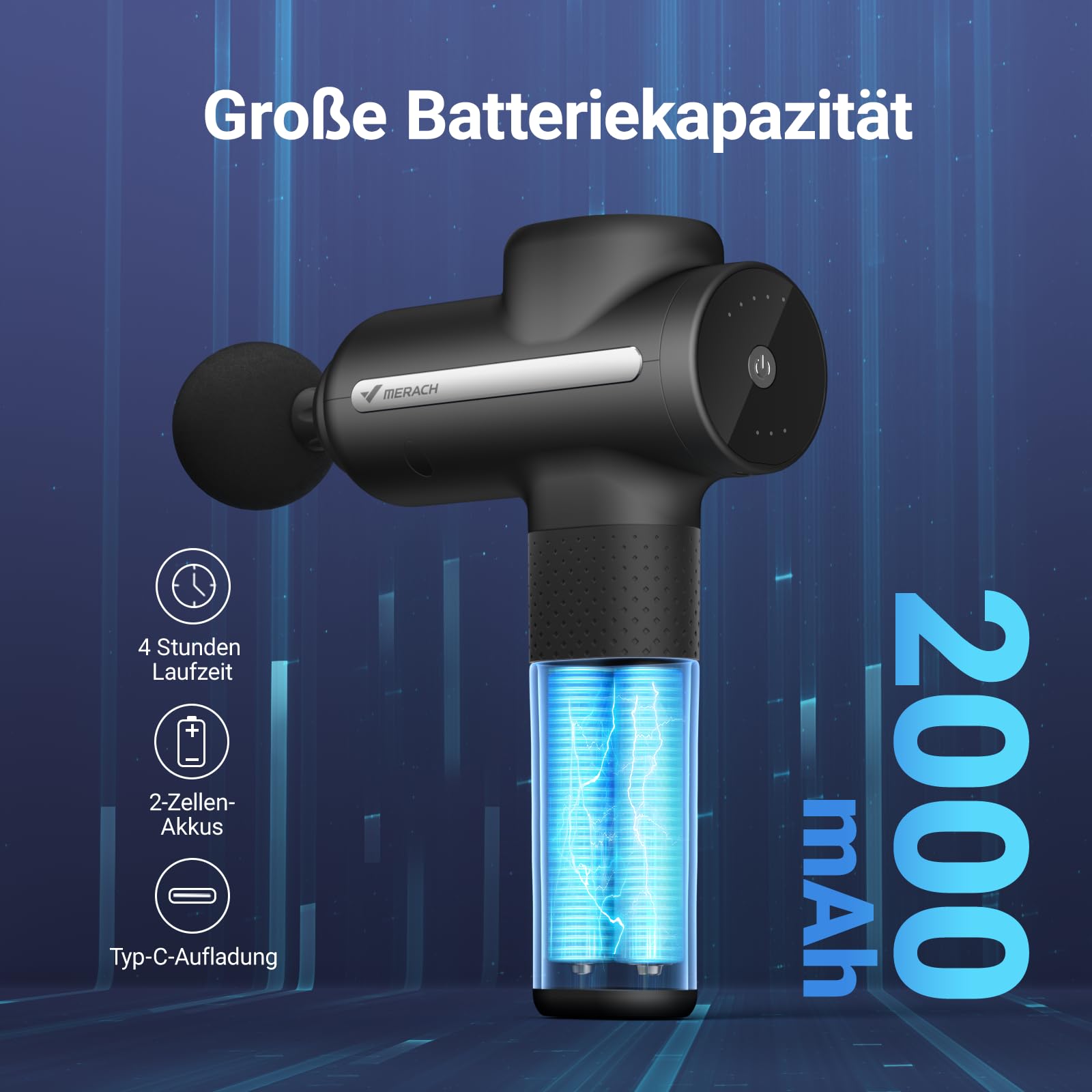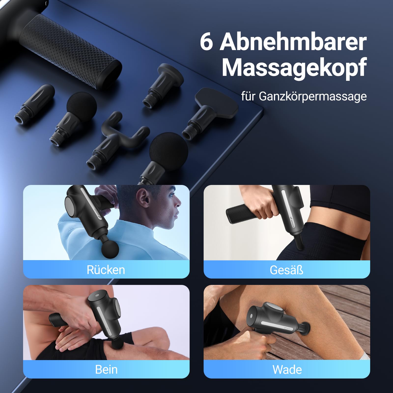 Massagepistole, Merach Massage Gun, Massagegerät für Schulter Körper Rücken Entspannung, Masagegäret Pistole Mit 6 Massageköpfen, Massagepistole Testsieger mit 5 Intensitätsstufen, Geschenke